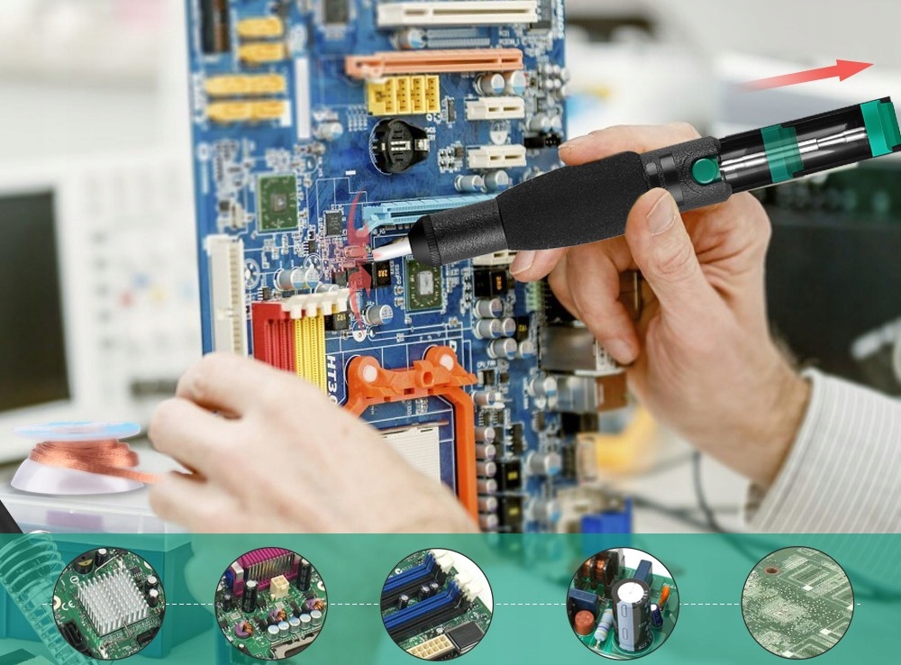 - Изделие предназначено для точного отсасывания излишков связующего вещества - олова с выводов элементов на печатной плате.