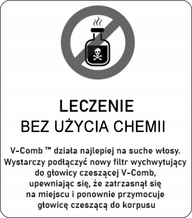 В то время как другие средства от вшей, такие как химические шампуни и электрические расчески, более опасны для маленьких детей и раздражают кожу головы, V-Comb ™ использует закругленную гребень из нержавеющей стали и мощность всасывания для мягкого разглаживания кожи головы и точного удаления вшей и яйца. V-Comb™ улавливает головных вшей и яйца, удаленные с волос, в запатентованный улавливающий фильтр. После обработки просто снимите сборный фильтр и закройте крышку для гигиеничной и эффективной утилизации.
