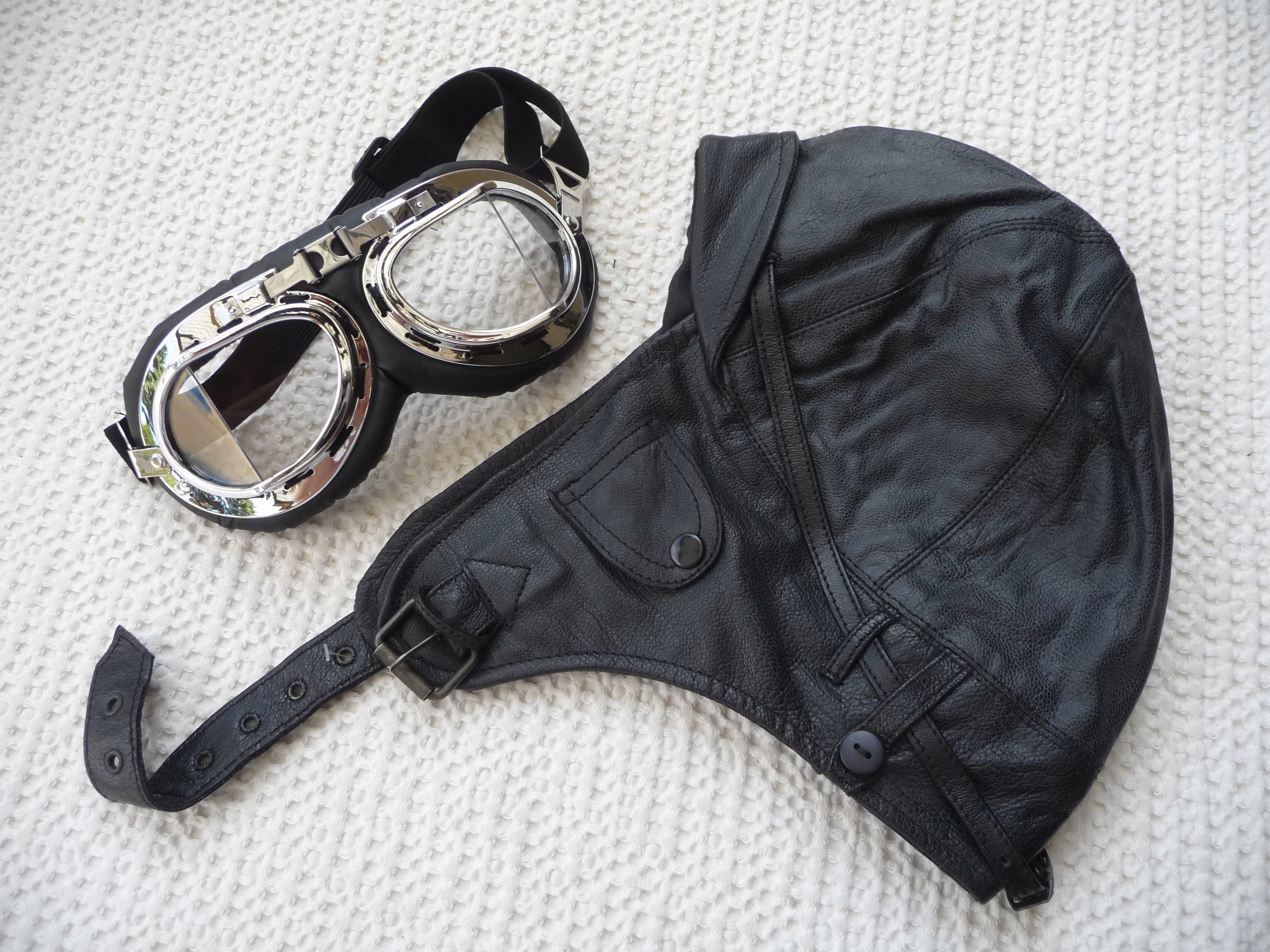 Pilot Cap Men's Cap Flyer's + USAF Goggles Leather 1943 WW2 WW2