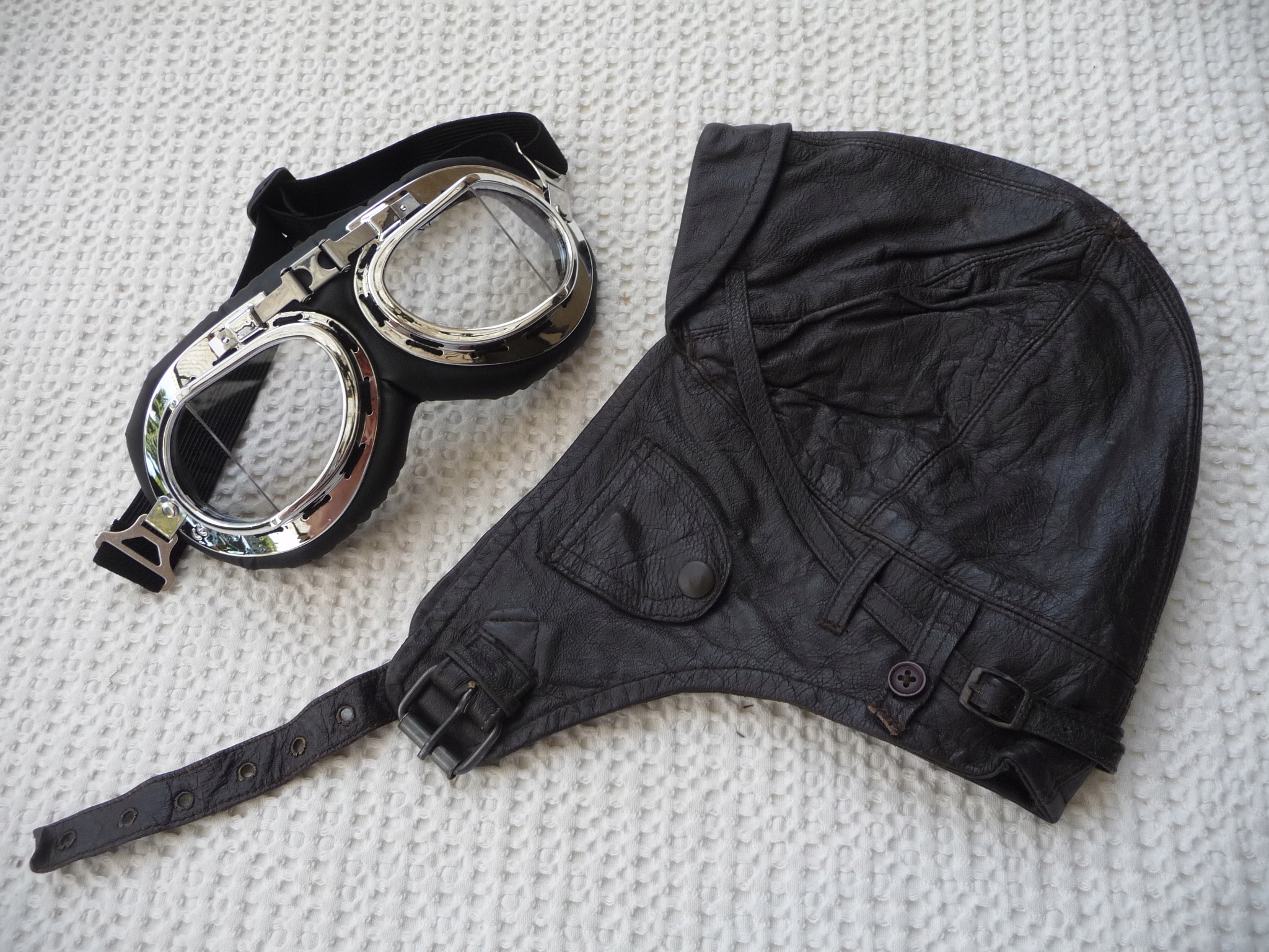 Pilot Cap Men's Cap Flyer's + USAF Goggles Leather 1943 WW2 WW2
