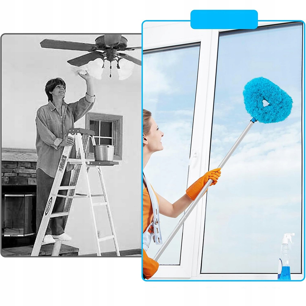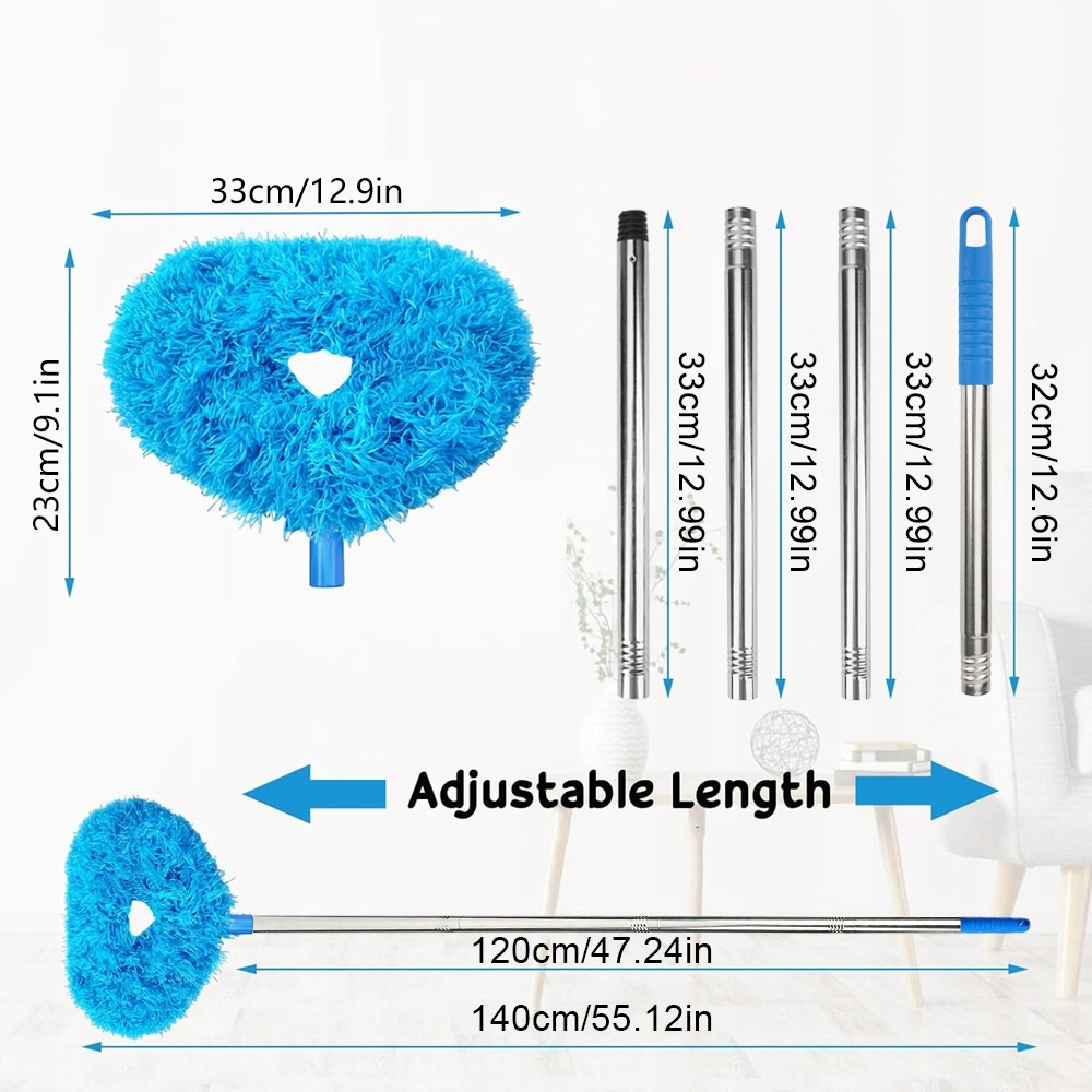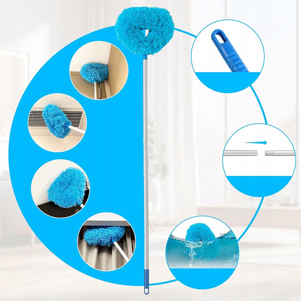 ✅phy: Палка, которая может быть продлена до 140 см, удобна для очистки высоких мест, таких как потолки, потолочные вентиляторы, лампы и т. Д.