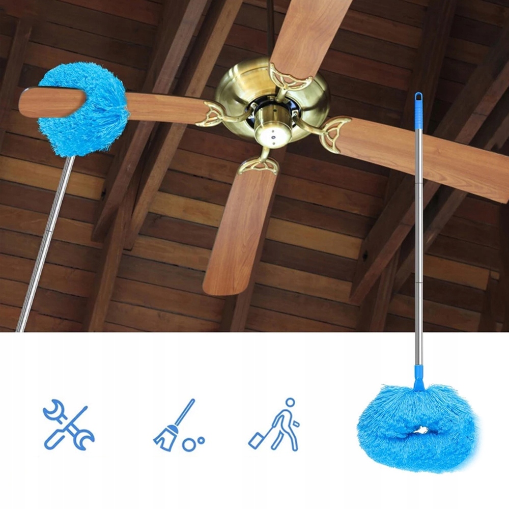 🧹 mioter для очистки потолочных вентиляторов, множественного использования, микроволокна, для очистки лопастей потолочного вентилятора, с выдвижной длинной ручкой, съемной, 33-140 см, для очистки книжных полей для книг, дверей, верхнего окна (синий)