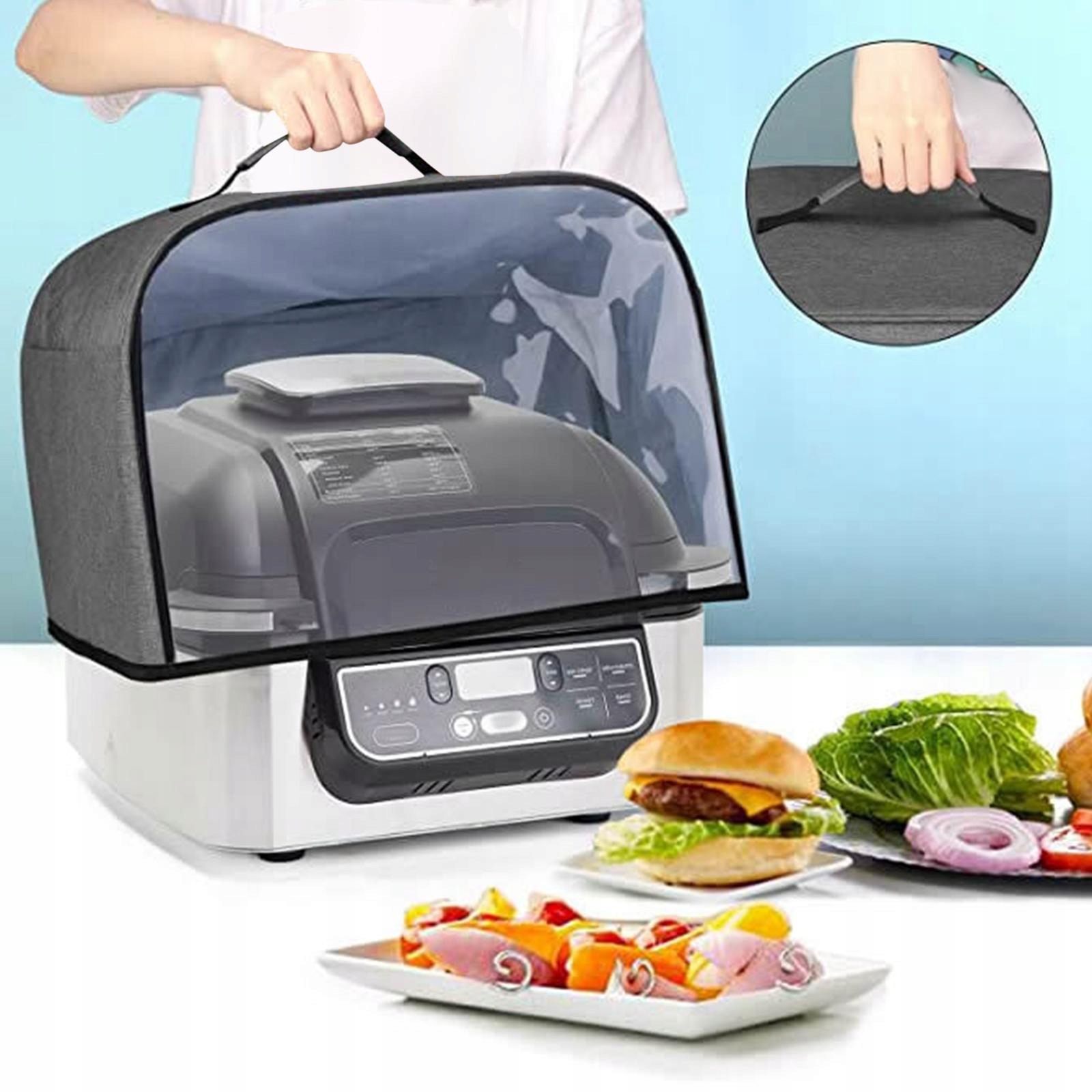 Защитная крышка компактна и удобна для переноски. Чехол для аэрофритюрницы легкий и портативный, занимает очень мало места и удобен в хранении.