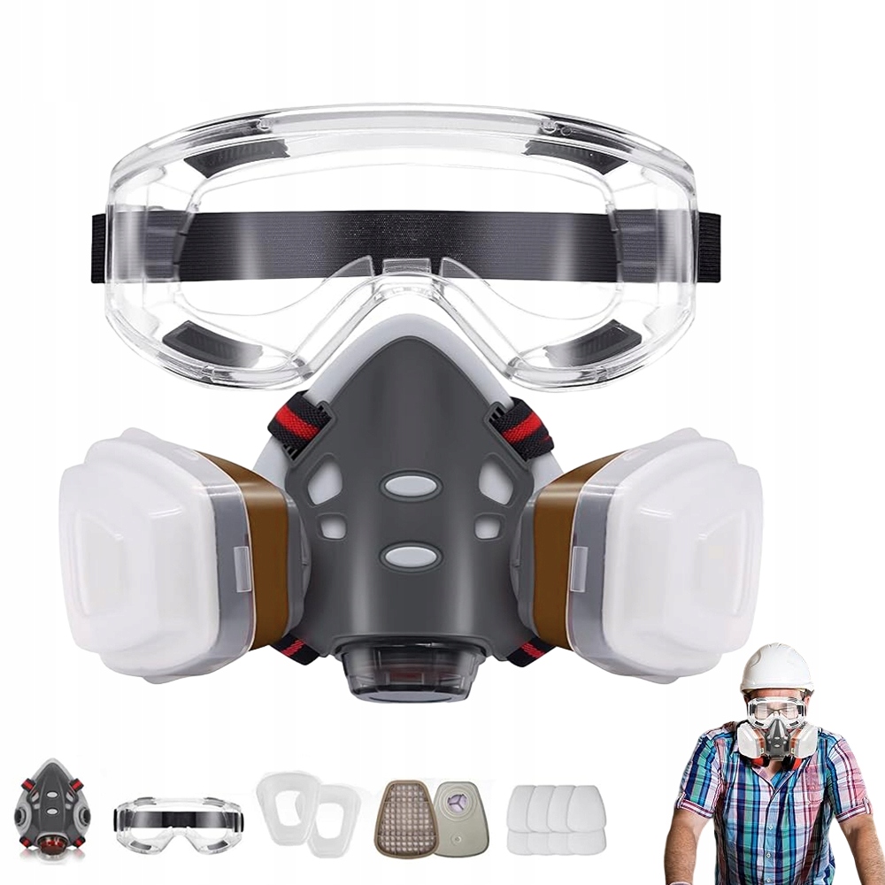 - Газовая маска с фильтром, гибким и регулируемым поклоном и крышкой для лиц, подходит для большинства форм головы. Даже если вы носите очки, очки обеспечивают надежную защиту глаз. Чтобы работать более удобно и безопаснее, носите пылевую маску.