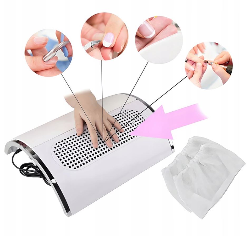- Пылесборник — это устройство, используемое для поддержания порядка во время укладки и обработки ногтей.