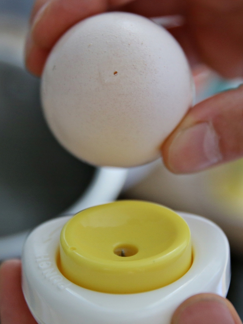 Достаточно проткнуть яйцо маленькой иглой, чтобы уменьшить напряжение в яйцо, которое предотвращает разбивание во время приготовления.