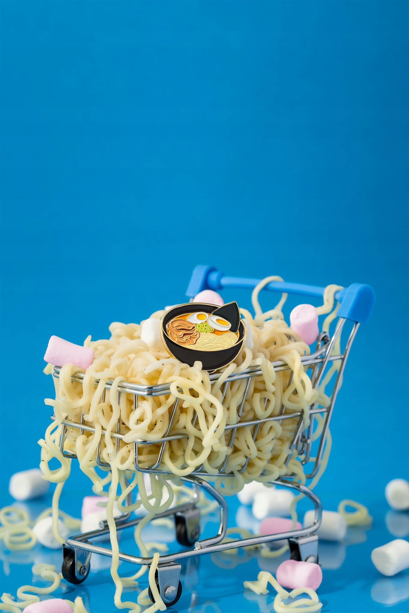 Чаша, полная пасты, яиц, мяса и добавок - на этот раз в версии, которую вы не можете есть, но вы можете с гордостью носить. Pin Ramen - это дань одному из самых знаковых японских блюд кухни. Идеально подходит для поклонников азиатских вкусов, продуктов, студентов, живущих на рамене и всех, кто любит удивительные аксессуары.