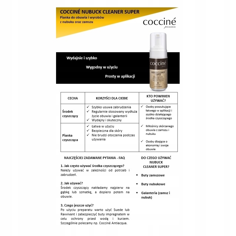 Pianka DO CZYSZCZENIA ZAMSZU I nubuku SUPER JAKOŚĆ Coccine 100 ml