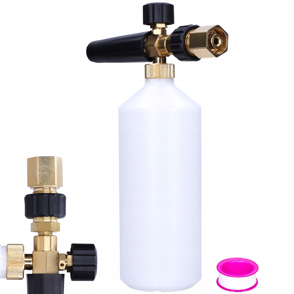 Пенообразователь имеет резьбовое соединение M22x1,5 мм, используемое в стиральных машинах профессиональной серии. Емкость пенообразователя составляет примерно 1л. Предназначен для получения и нанесения сильной пены для чистки и ухода за транспортными средствами, камнем, фасадами и деревом. Прозрачный химический бак позволяет контролировать количество пенообразователя. Пенный пистолет имеет регулировку угла струи воды с пеной и количества подаваемых химикатов.