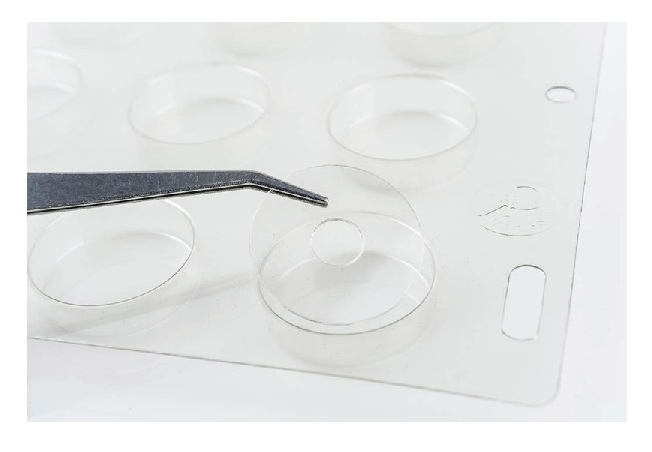 Стальной пинцет длиной 13,5 см с загнутым кончиком, используемый для извлечения стабилизирующего диска из кармана для карт.