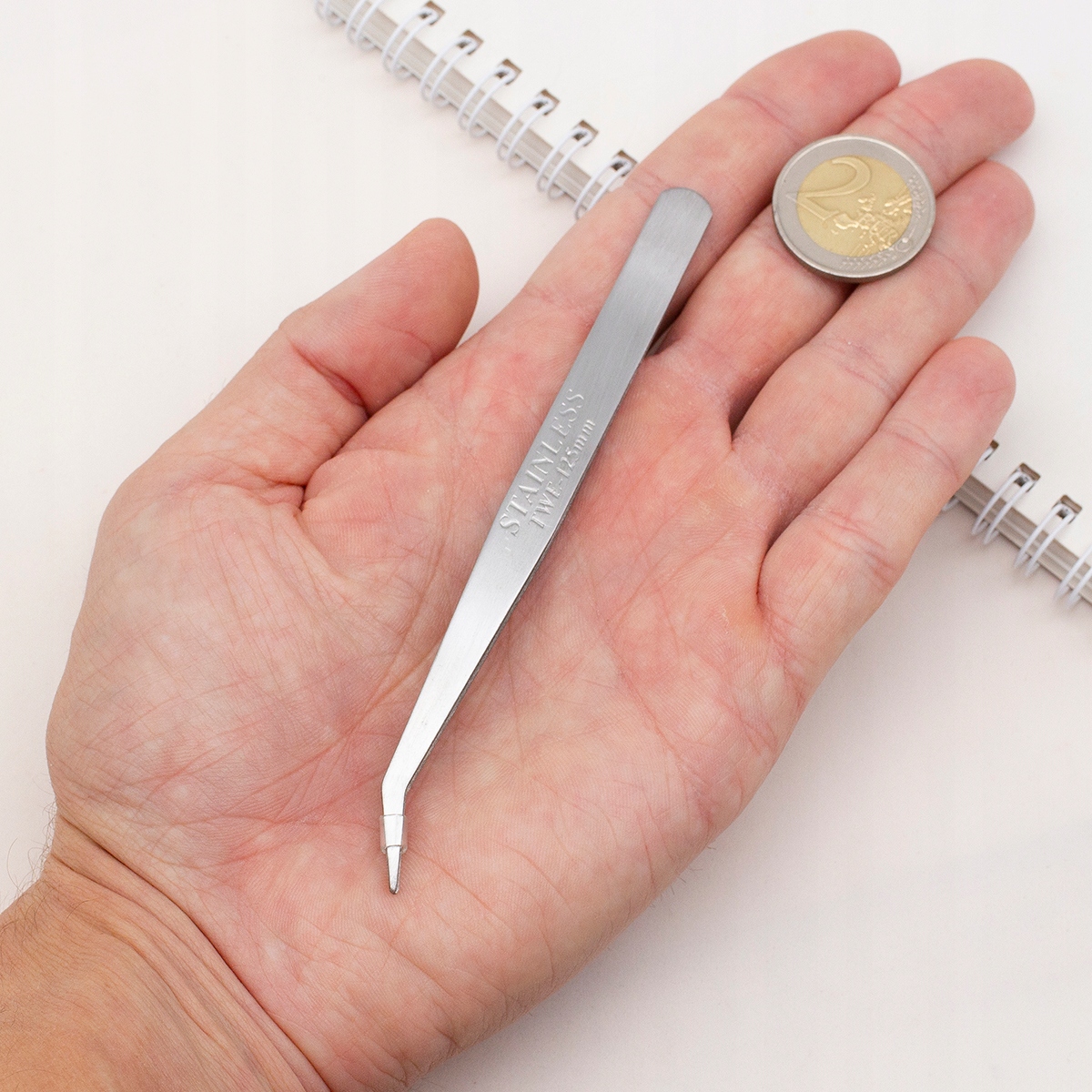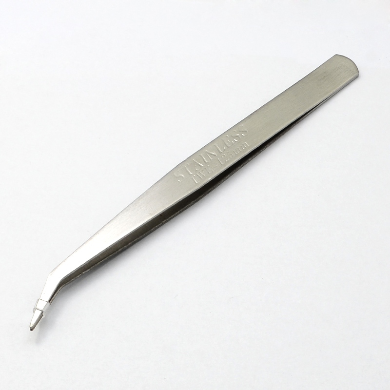 Пинцет изготовлен из железа и имеет изогнутый носик для удобства использования.