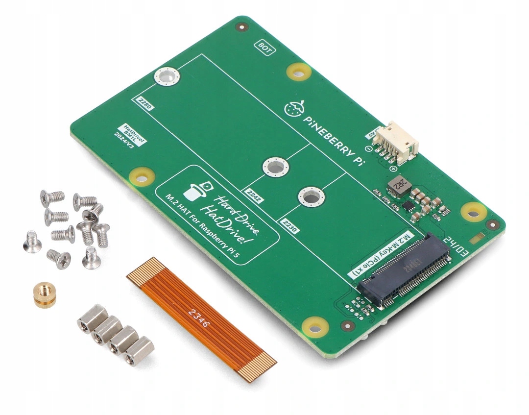 Pineberry Pi HatDrive! Внизу — адаптер NVMe 2230, 2242, 2280 для Raspberry Pi 5