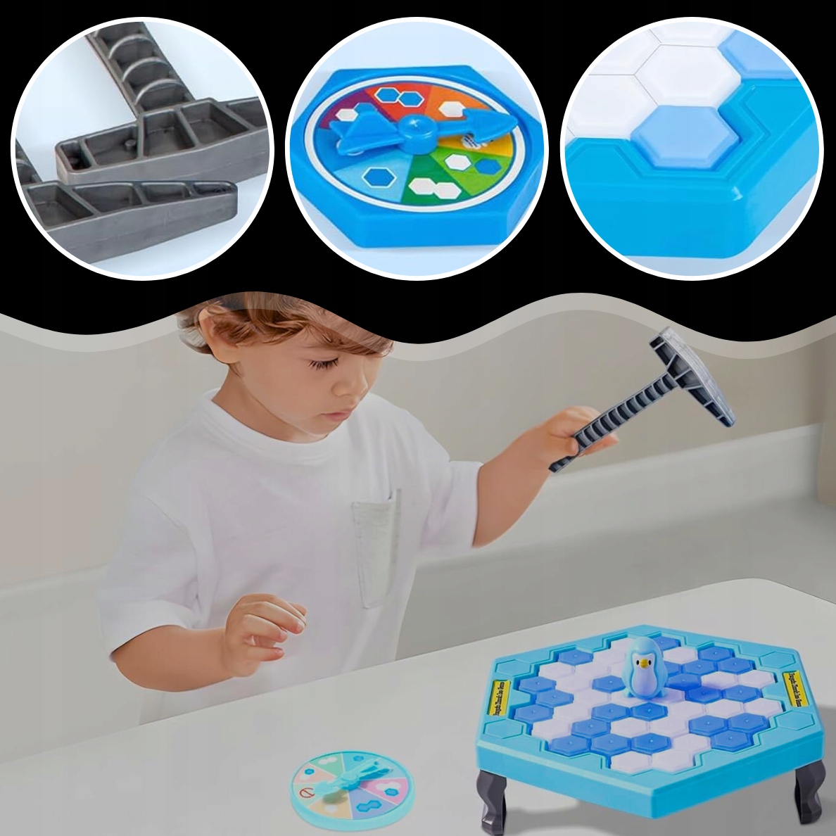 ➡️ КРАСОЧНЫЙ ДИЗАЙН – интенсивные цвета льда и милого пингвина делают игру визуально привлекательной. Это привлекает внимание детей и побуждает их часто играть.