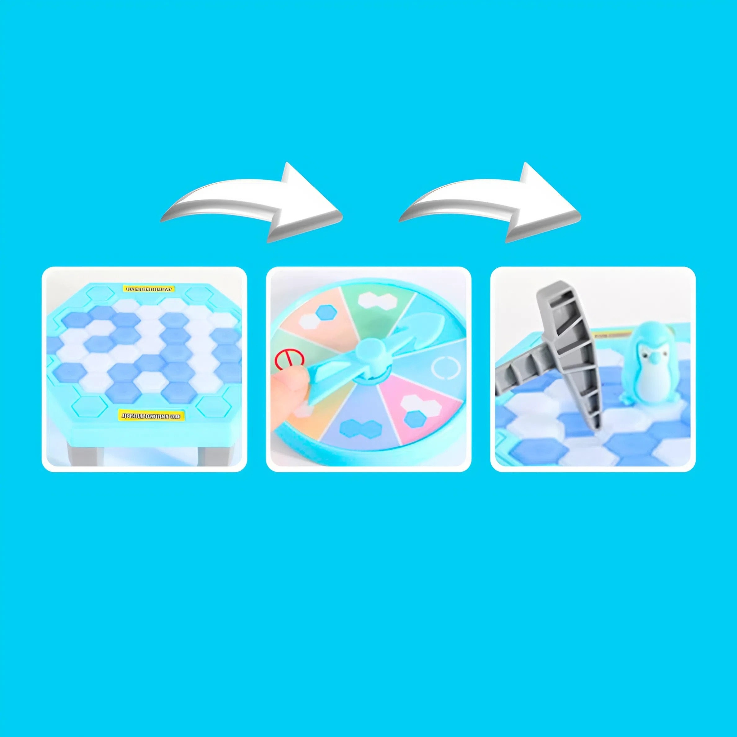 ✅Игроки рисуют цвет на циферблате и выбивают молотком кубики льда. Проиграет тот, кто заставит пингвина упасть.