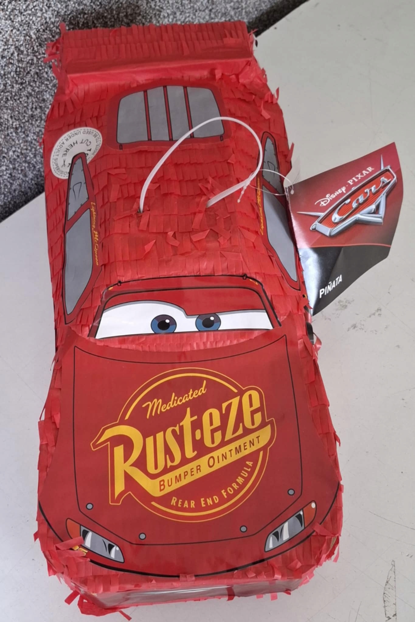 Piniata смоделировал на зигзаге McQueen или главном герои автомобилей. Piniata - это забавное для самых молодых, что становится все более популярным в Польше. На вечеринке для малышей готовится небольшие подарки - сладости или крошечные игрушки. Родитель приносит сосну и держит ее на палке или вешает ее. Дети тянут струны по очереди. После того, как вытащили правый из Piniata, сладости или других предметов, ранее вложенных. 9903158,