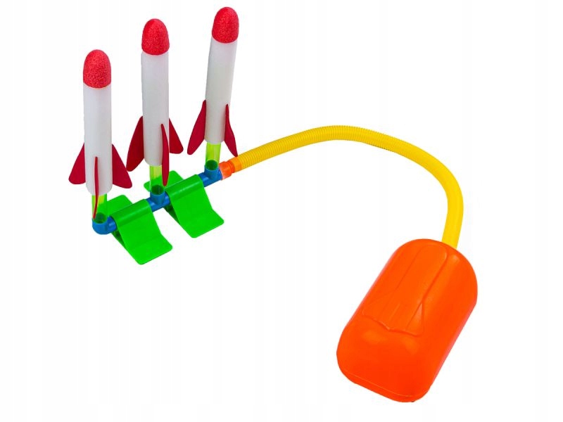 Соберите пусковую установку, соединив трубки и насос. Затем размещаем на концах трубок пенопластовые установки. Энергично прижимаем ногу в отжимании. При удушье повышается давление внутри труб. Воздух выходит на концах трубок, подбрасывая наши ракеты высоко в воздух. Чем сильнее мы нажмем на насос, тем дальше полетит ракета. Это очень весело.