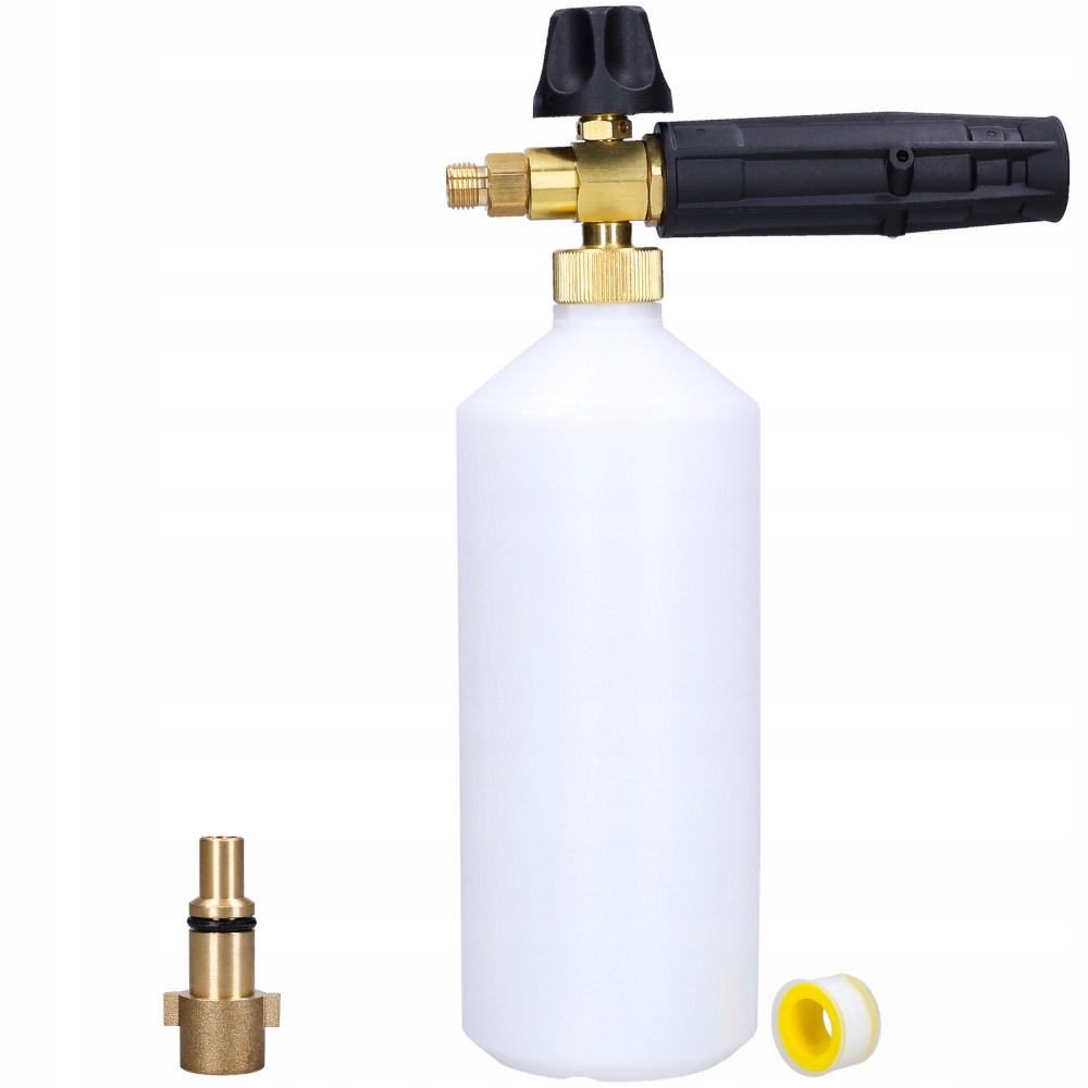 Пенообразователь оснащен быстроразъемным соединением, используемым в стиральных машинах Nilfisk Stihl. Пластиковый резервуар для воды вмещает 1 литр чистящих средств. Он изготовлен из полупрозрачного материала, что позволяет полностью контролировать жидкость внутри устройства.
