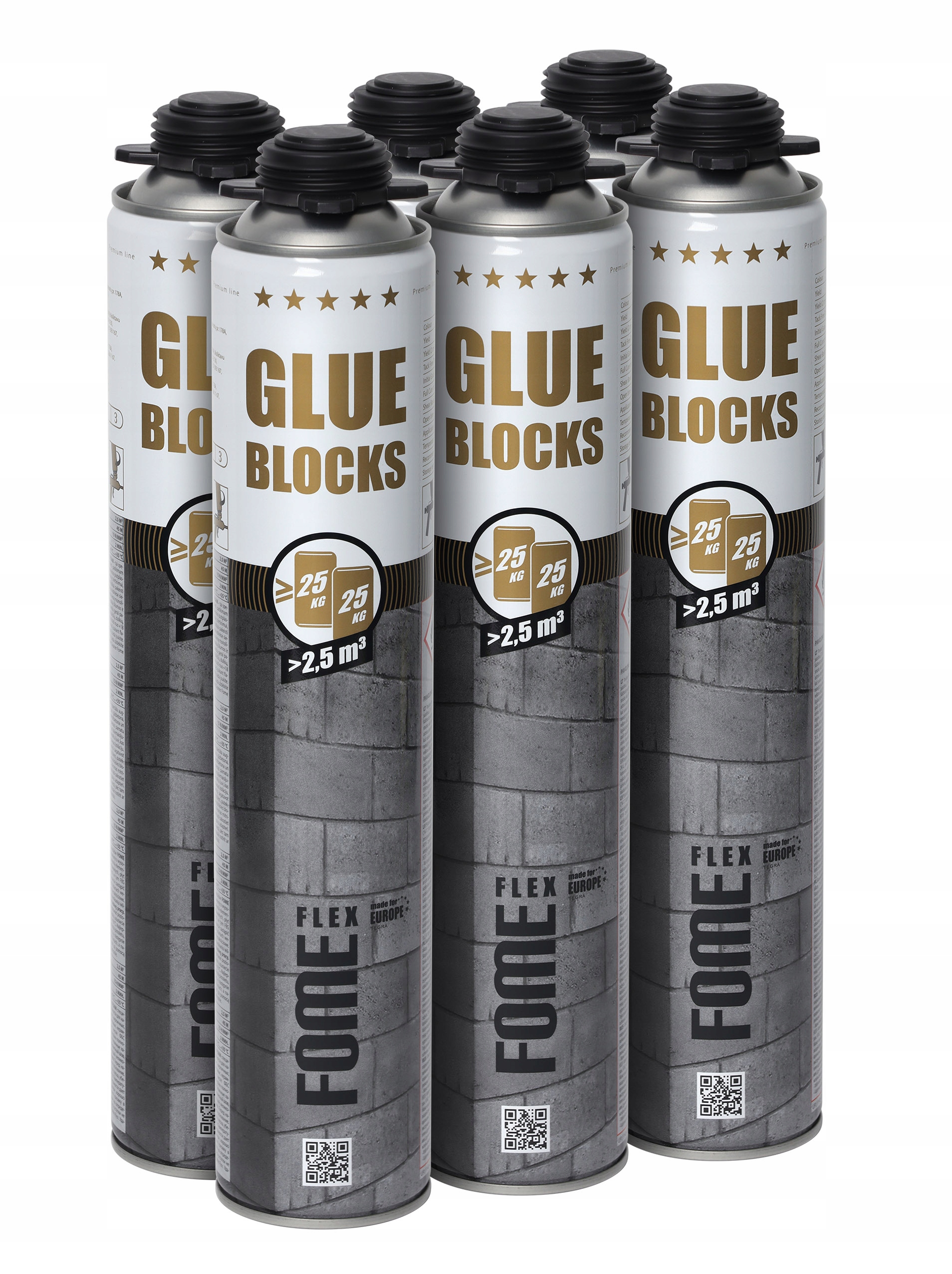 Специальный пенный клей на основе полиуретана для приклеивания строительных элементов по гелевой технологии, таких как строительные блоки, кирпич, камень, натуральный камень и т.п.