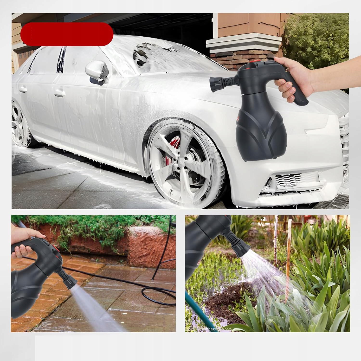 - Этот электрический пенопластовый распылитель не ограничен промывкой автомобиля; Он работает во многих работах по уборке дома и даже поливанию.