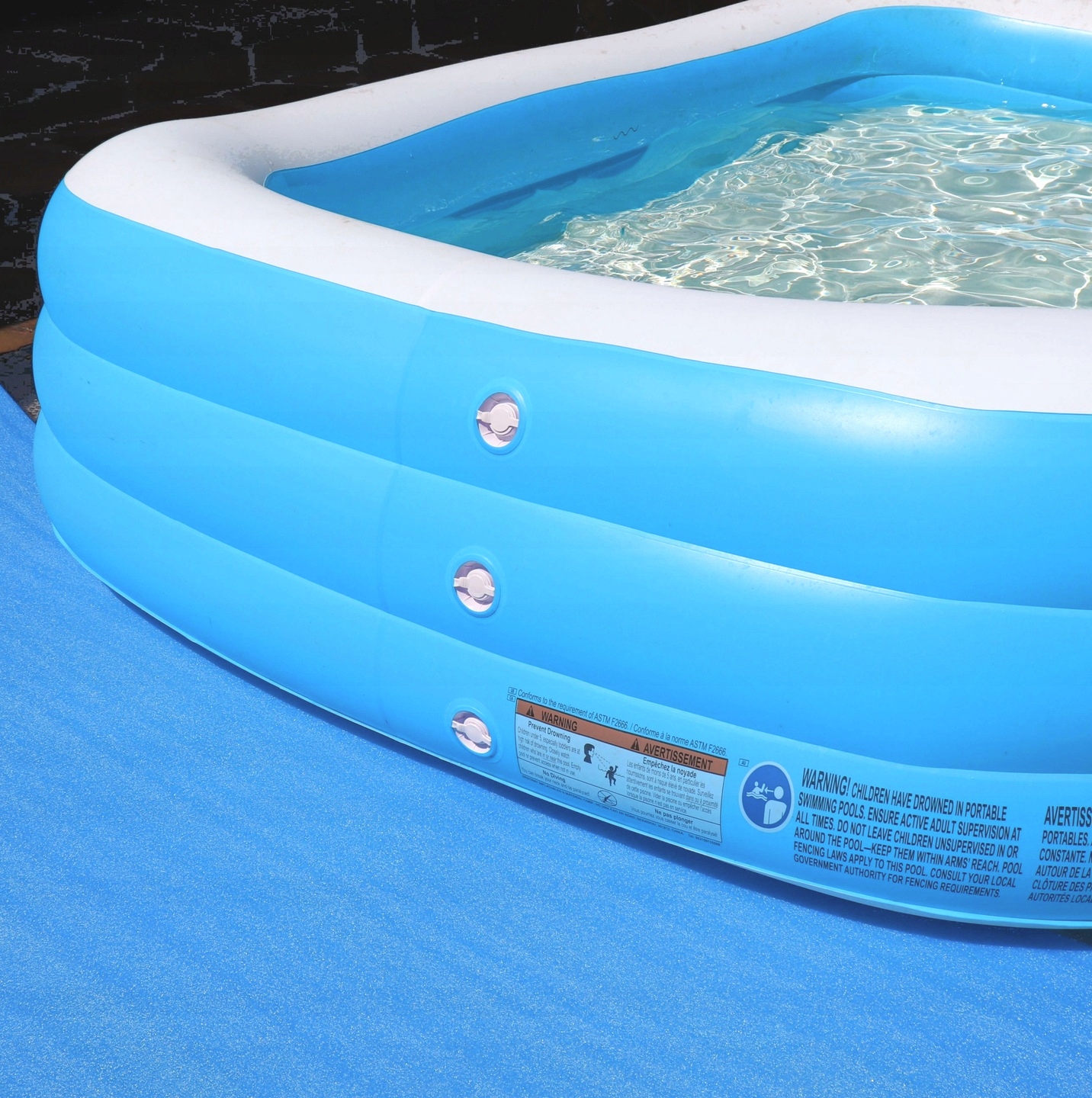 Полиэтиленовый коврик под пулами синего круга o 20 мм и плотность 22 кг/м3 идеально поглощает все воздействия, а защищает от механического повреждения. Сад . Не ждите больше и позаботьтесь о солидной защите для вашего садового бассейна!