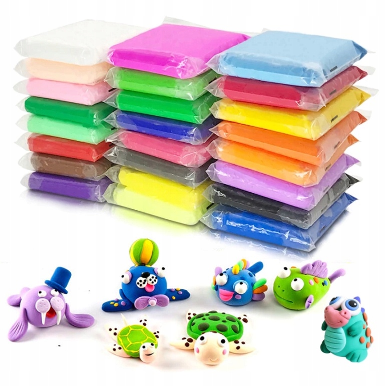Супер глиняная пластиковая масса является идеальным набором для самых молодых энтузиастов моделирования. Стимулирует творчество и воображение. Это приятно на ощупь. Он не тормозит и не испачкается. Набор включает в себя 3 спатула, благодаря которой вы можете создать любые шаблоны и статуэтки