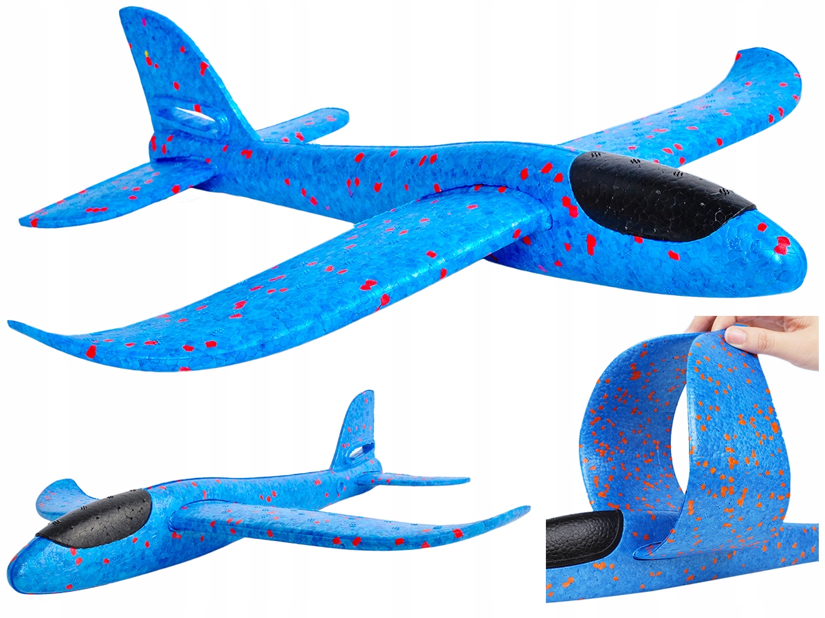 Игрушка изготовлена из закаленного и прочного полистирола. Его легкая конструкция и обтекаемая форма позволяют самолету легко парить в воздухе. Он имеет два отверстия, благодаря которым мы можем определять траекторию его полета. Если мы опустим крыло, оно будет скользить по прямой. Вставка в верхнее отверстие заставит самолет выполнять акробатические трюки (бочки, восьмерки).