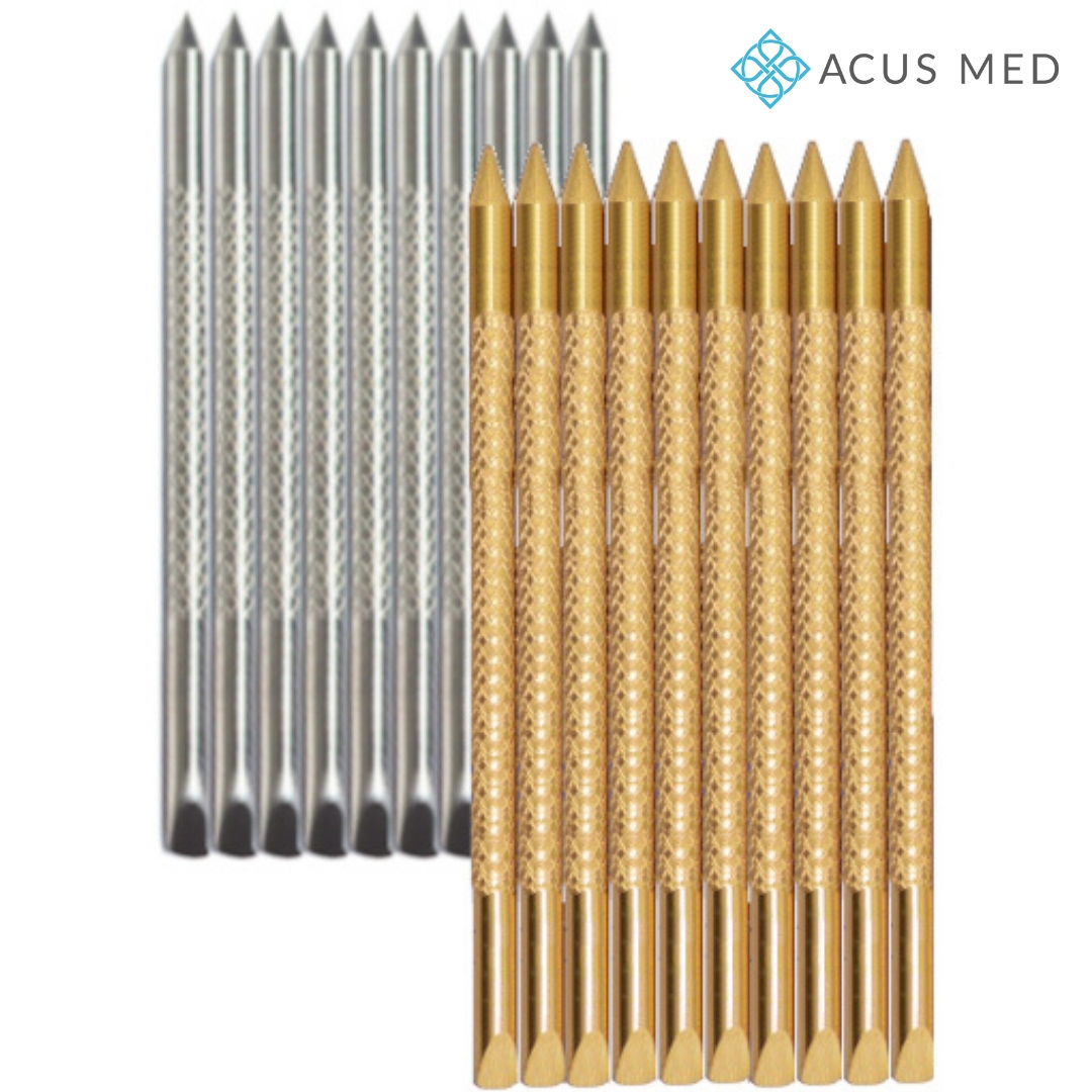 Шпильки используются для стимуляции нервных путей, отдельных акупунктурных точек и для манипуляций с фасциальными тканями.