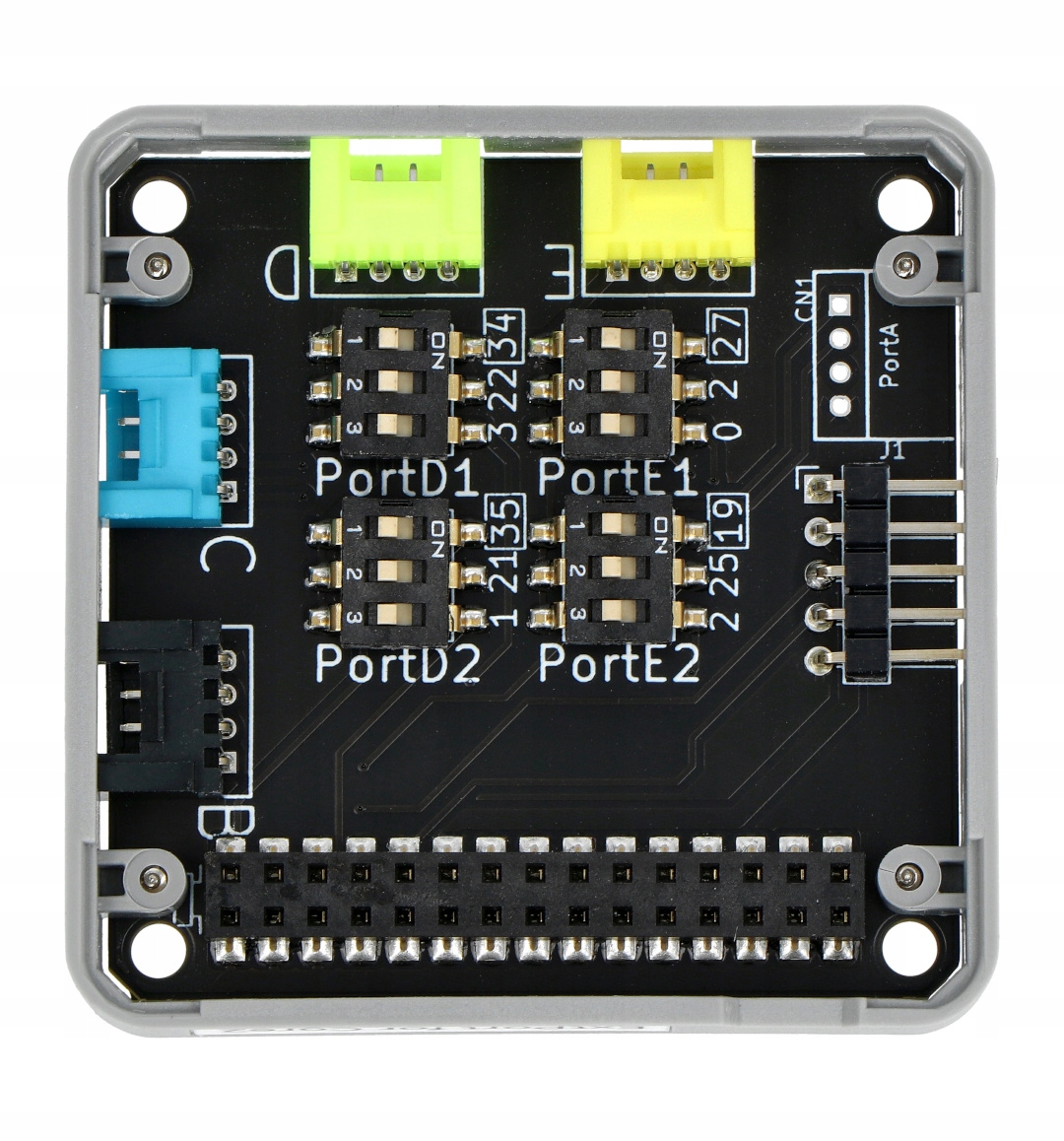 Расширитель выводов в виде оверлея для M5Stack Core2. В нем предусмотрено целых четыре разъема Grove и четыре DIP-переключателя, с помощью которых можно подключать к модулю разработки дополнительные периферийные устройства, повышая таким образом функциональность проекта. Дополнительно расширитель оснащен 4 золотыми штифтами с шагом 2,54 мм.