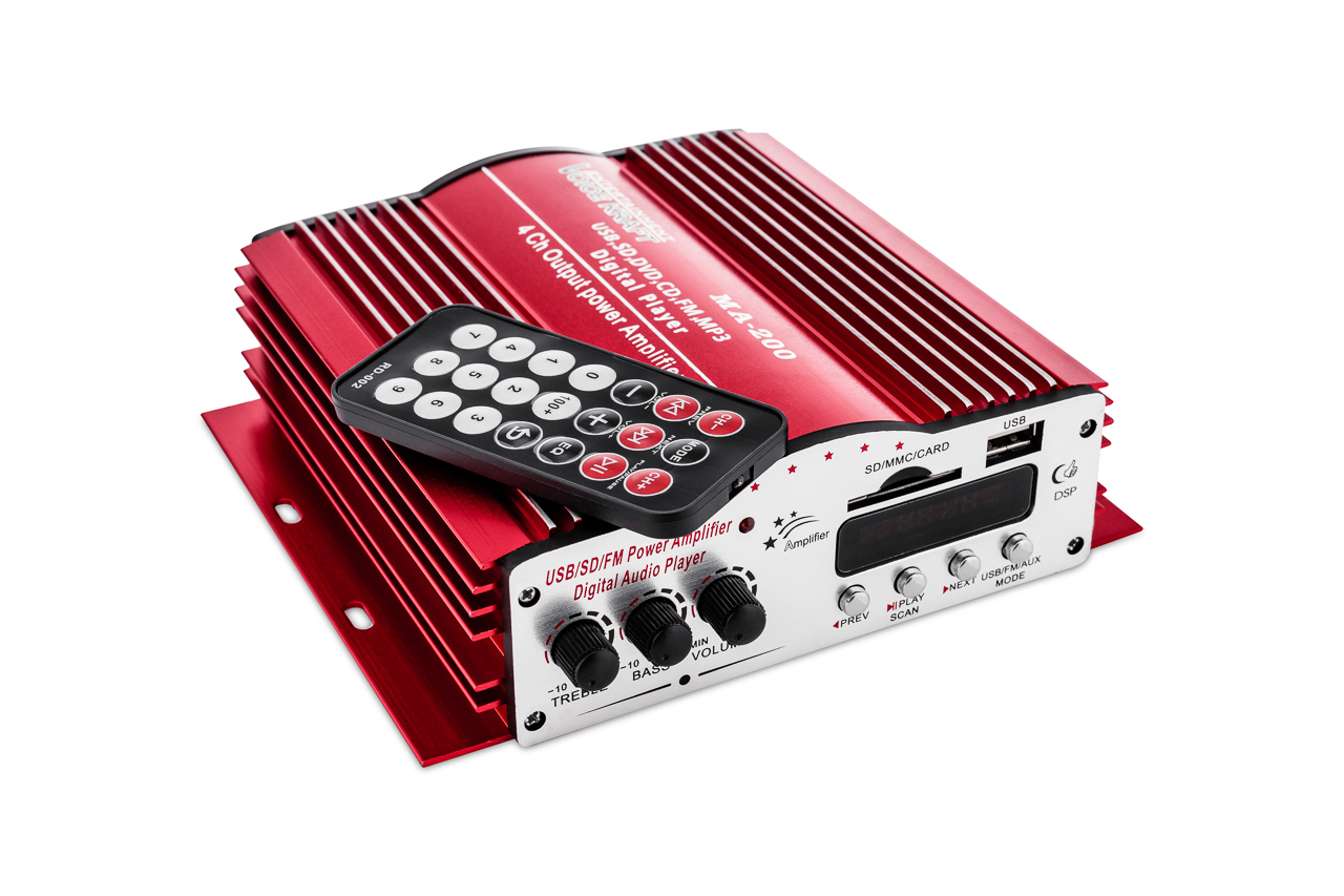 Усилитель имеет вход USB и SD, благодаря которому мы можем воспроизводить музыкальные файлы в формате mp3.