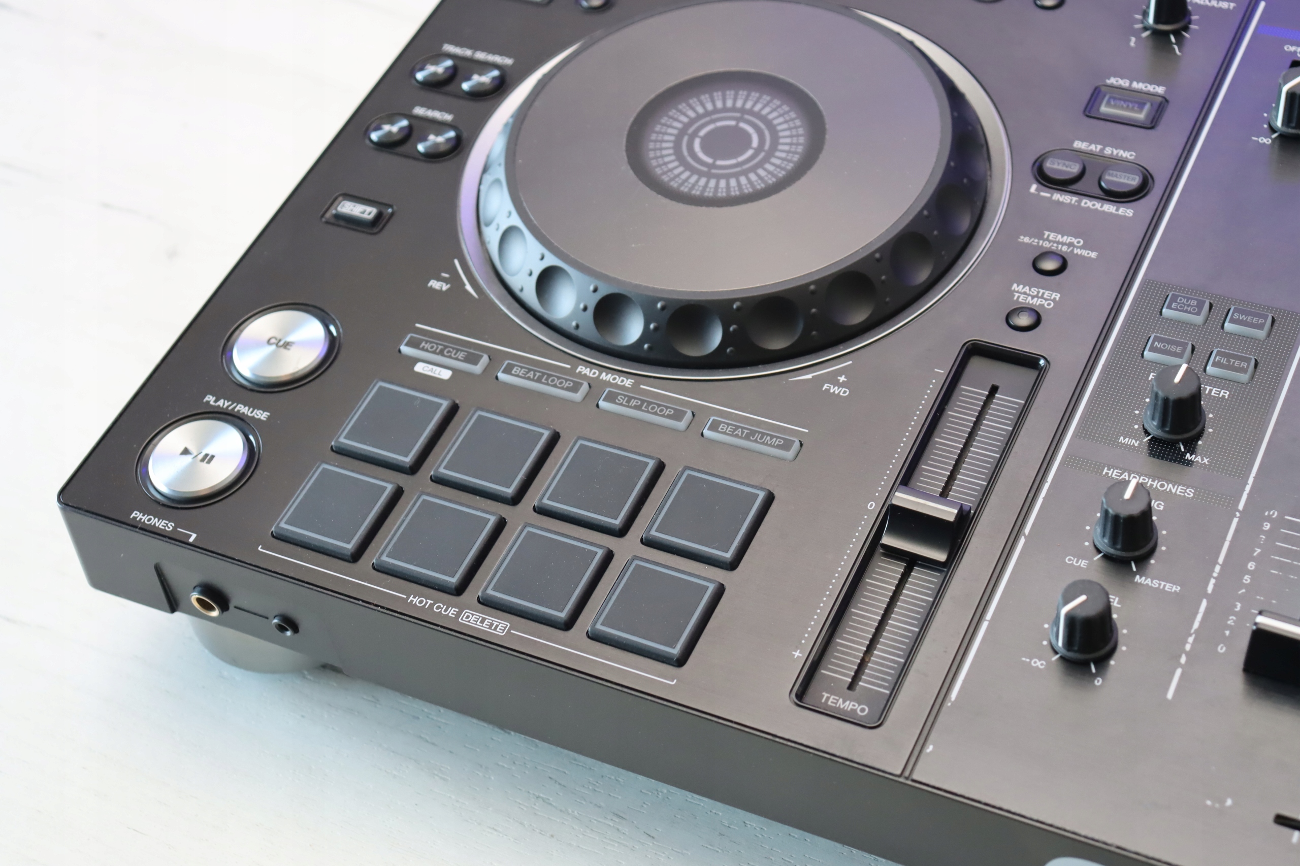 Раскройте свой творческий потенциал с 8 большими, разноцветные сенсорные панели на каждой деке, обеспечивающие мгновенный доступ к профессиональным функциям, таким как Hot Cues, Beat Loop, Slip Loop и Beat Jump (одиночный или непрерывный).
