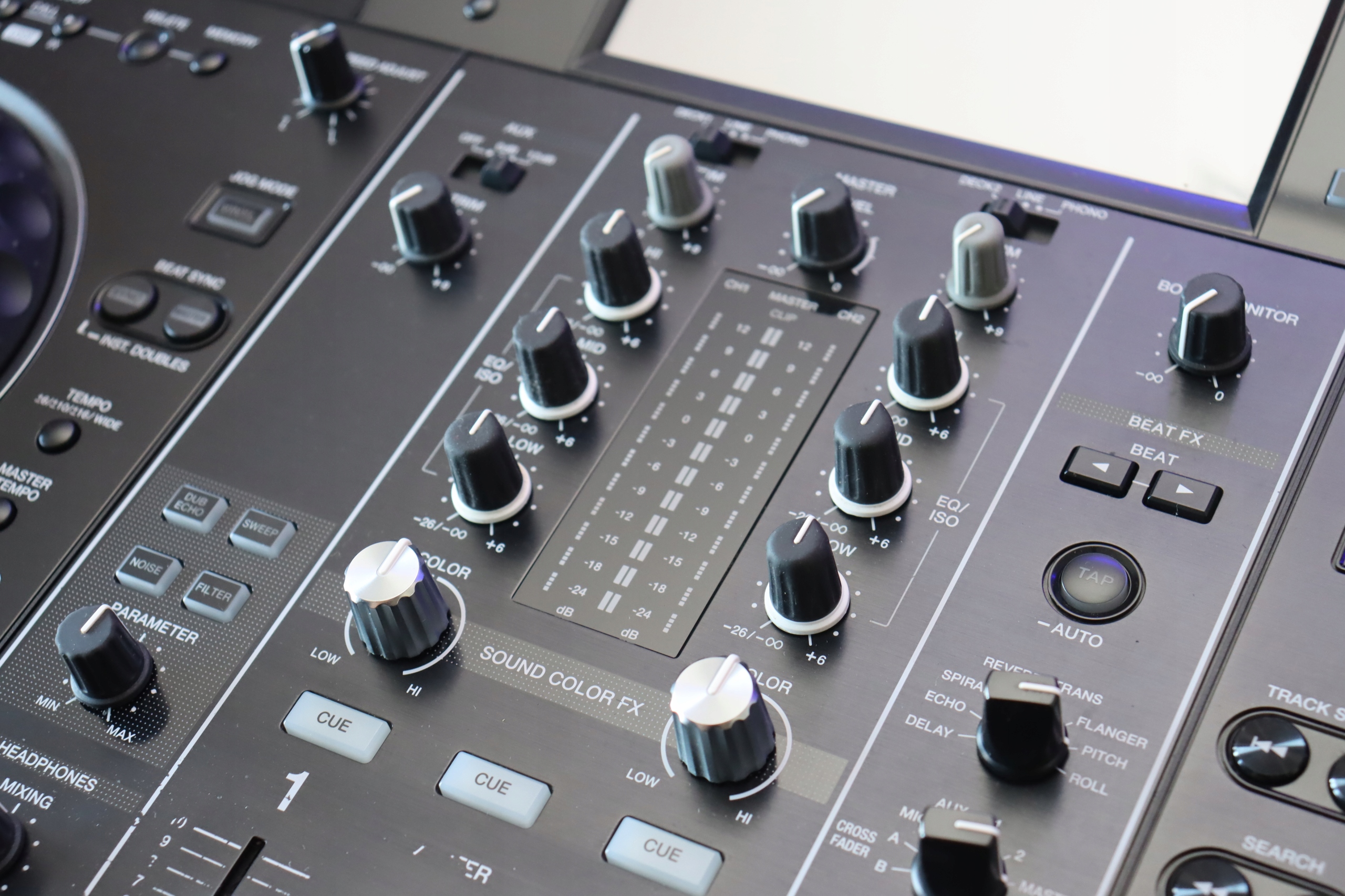 Создавайте точные и плавные миксы. с использованием эквалайзеров и ползунков отдельных каналов, кривые которых аналогичны кривым профессионального клубного микшера DJM-900NXS2. Sound Color FX и Beat FX также унаследованы, что дает вам свободу творчества.