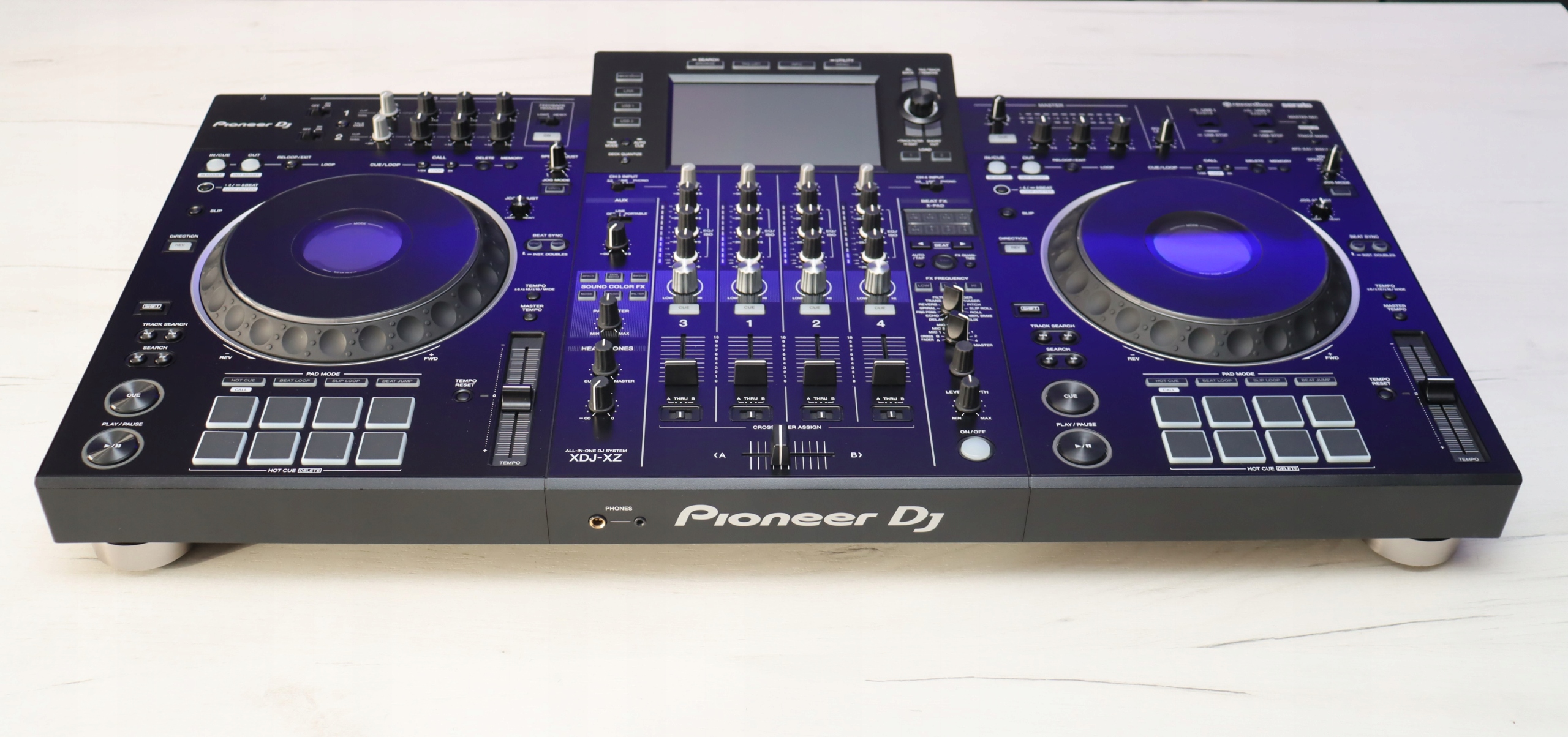 Pioneer XDJ-XZ-это последний тип станции DJSKA с 4 каналами. Это означает, что устройство может работать как автономный игрок USB (работа в 2 каналах), а также как MIDI -контроллер программного обеспечения DJ, и адаптировано для работы с DJ Rekordbox DJ и Serato DJ (работа в 4 каналах). В XDJ-XZ мы знаем один порт USB B и два порта USB и позволяя одновременно работать до трех диджеев одновременно. Pioneer XDJ-XZ предлагает контрольный звуковой миксер с фоно / линейными входами (2 канала смесителя с номерами 3 и 4) Beat FX и Color Fx Sound, Kola Jog Koli, известные из таких устройств, как CDJ-2000NXS2 / CDJ-3000 и показ OLED Touch, известный из песен серии CDJ, Playlists ... Устройство имеет Deforce Roctore с помощью Decription Cortresser с помощью Degraction Corptore и 3-й осложнение. Нижняя часть колоды предлагает 8 падков, которые служат, среди прочего, такие функции, как: горячий сигнал, петля бита, петля скольжения и бит -прыжки