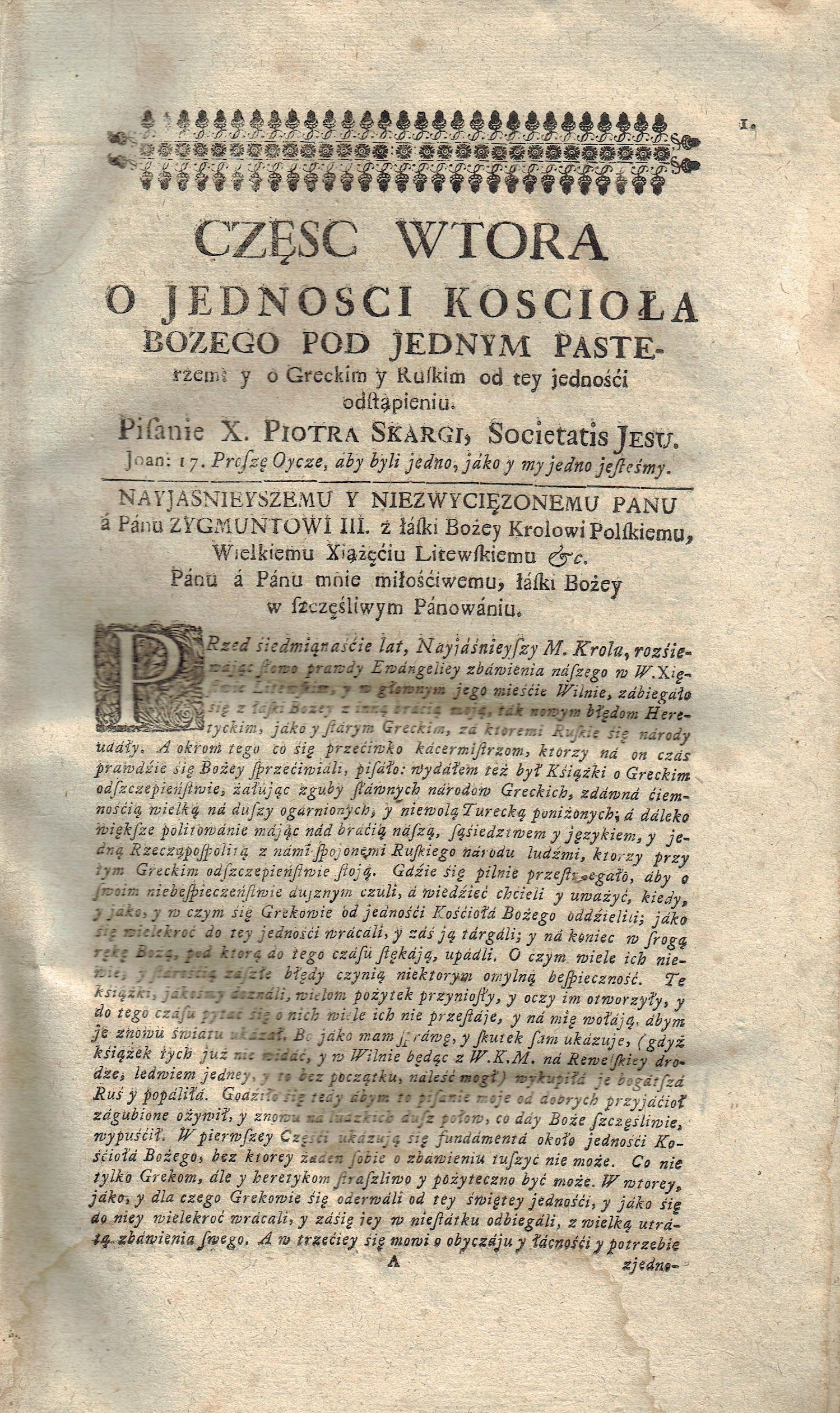 Преподобный священник Петр Скарга Soc: Jesu Theologia.