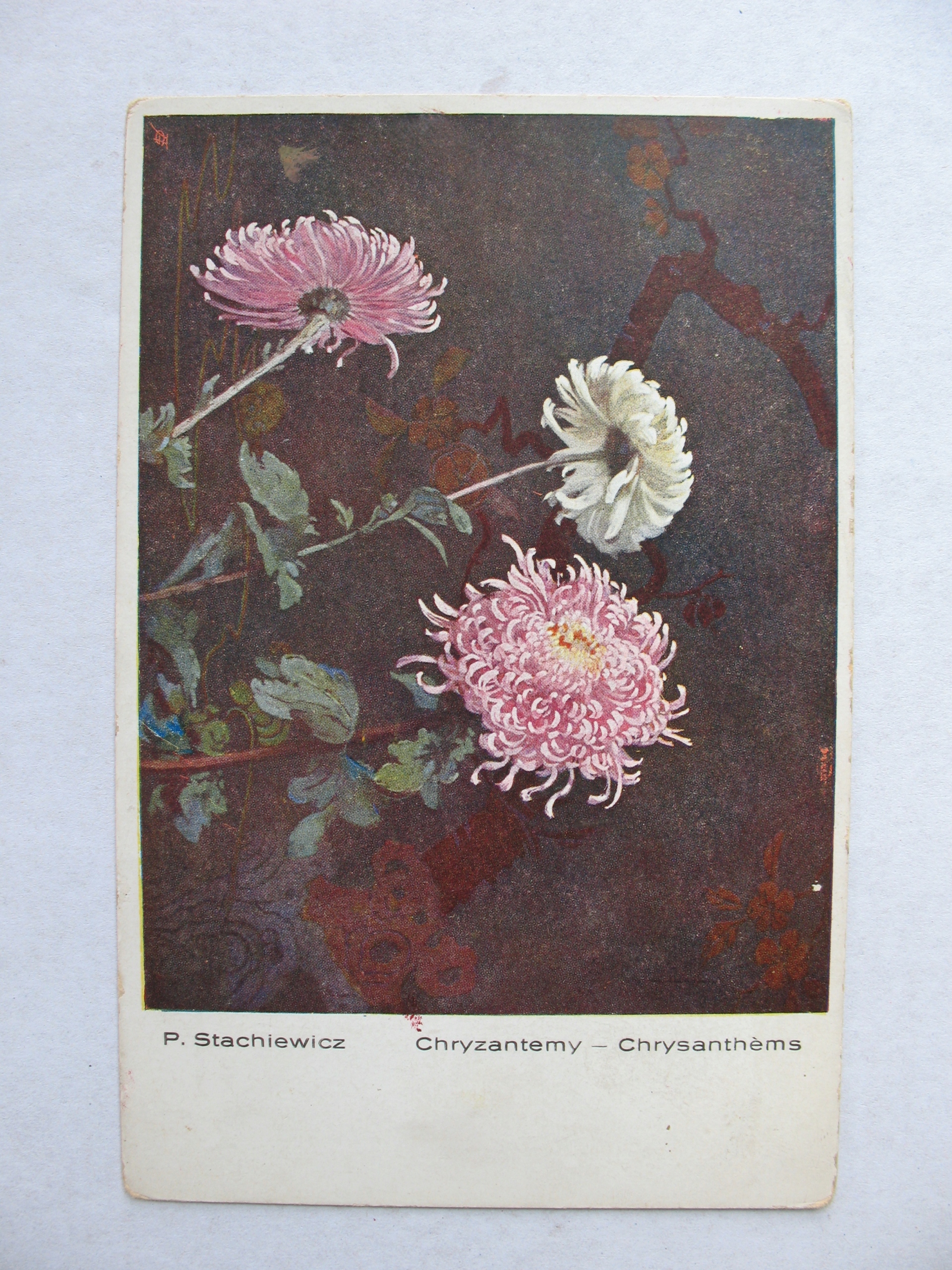 PIOTR STACHIEWICZ CHRYZANTEMY przedwojenna POCZTÓWKA