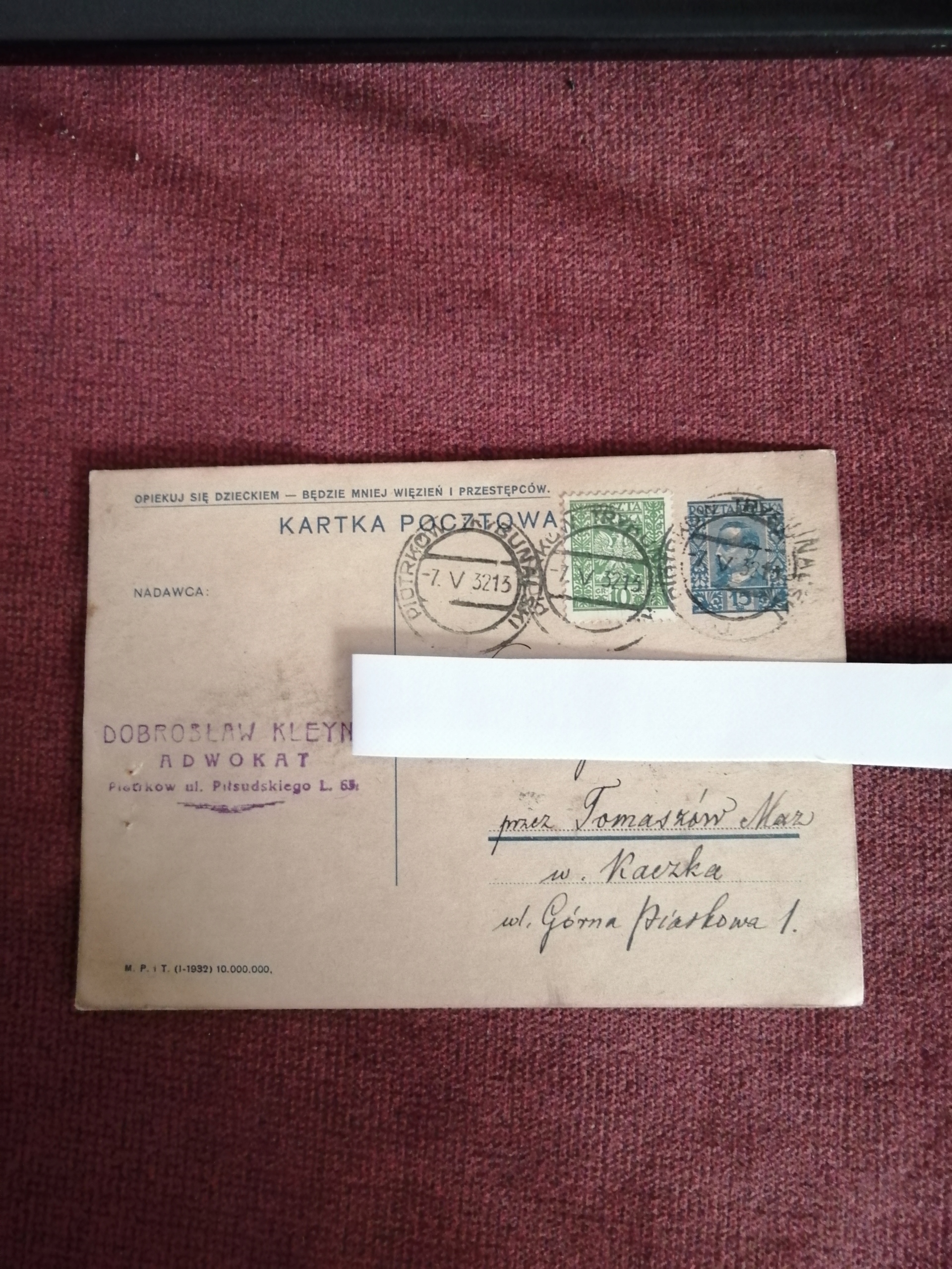 PIOTRKÓW - 1932- KARTA POCZTÓWKA - ADWOKAT KLEYNA - ZNACZKI STEMPLE