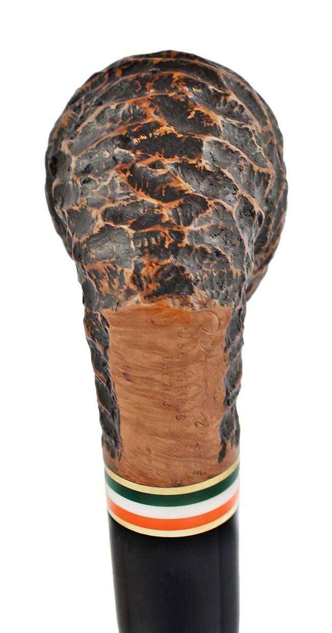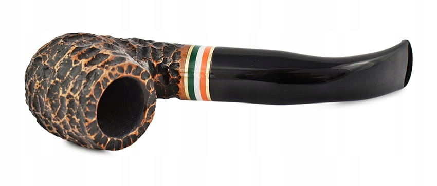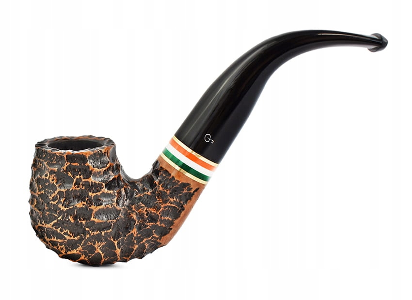 Труба довольно сильно изогнутой формы. Точные, глубокие канавки подчеркнуты более яркими отблесками. Голова имеет темно-коричневый оттенок шиповника. Между грифом и акриловым мундштуком находится элегантное кольцо золотого цвета, украшенное цветами ирландского флага. Гладкая часть внизу горловины подписана логотипом компании, номером и названием модели – гарантия оригинальности. В этом месте также видна естественная текстура древесины. Предварительно газированная труба вмещает среднее количество вашего любимого табака. Он удовлетворит требовательных курильщиков трубки. Идеальная идея для уникального подарка.