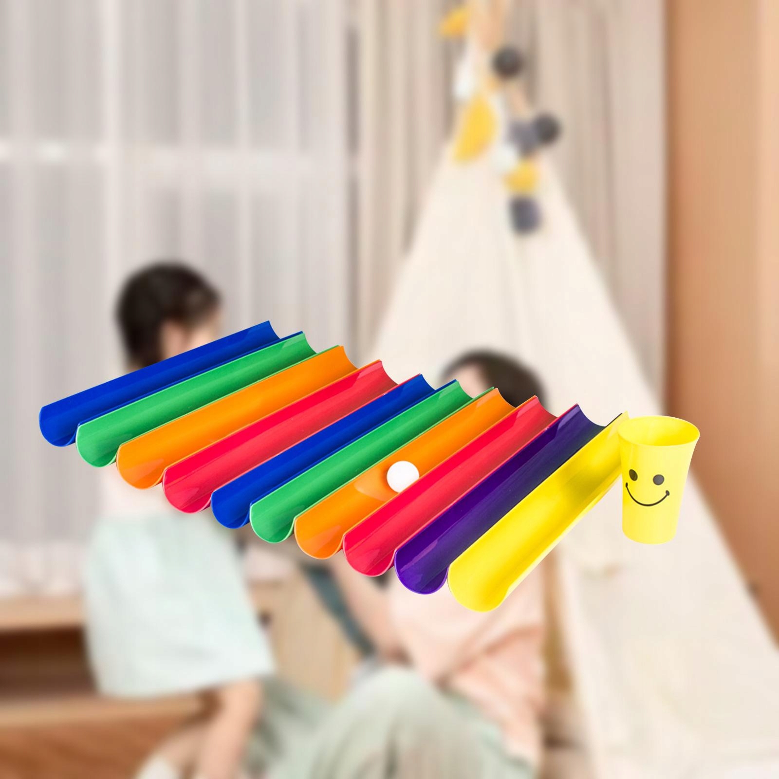 [Характеристики продукта]: половина: 50 см х 5 см/19,69 дюйма х 1,97 дюйма, чашка: 8,5 см х 12,5 см/3,35 дюйма х 4,92 дюйма, диаметр шара : 4 см/1,57 дюйма. (Цвета шариков и чашек выбираются случайным образом)