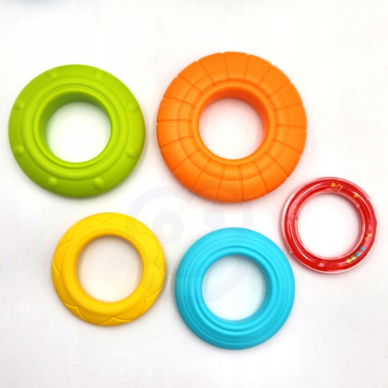 - - Разноцветные кольца можно использовать как отдельную игрушку, сняв их с повязки - разноцветная погремушка