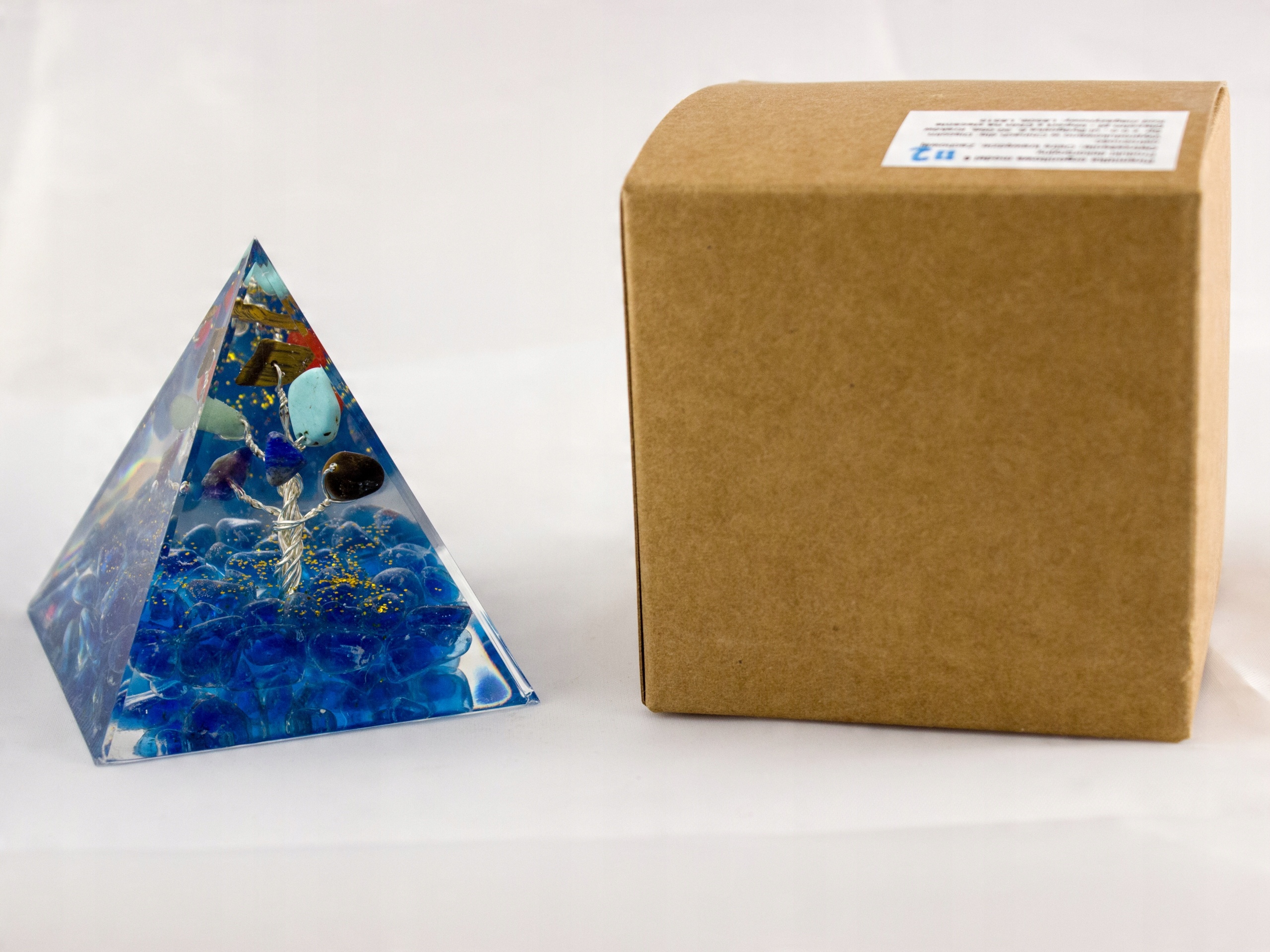 Красивая оргонитовая пирамида - Темно-синий стеклянный гравий, красивое украшение из натуральной смолы с Деревом внутри с разноцветными минералами, излучающими энергию, дарующую хорошее здоровье, нейтрализующую плохую энергетику, очищающую окружающую среду, придающую бодрости.