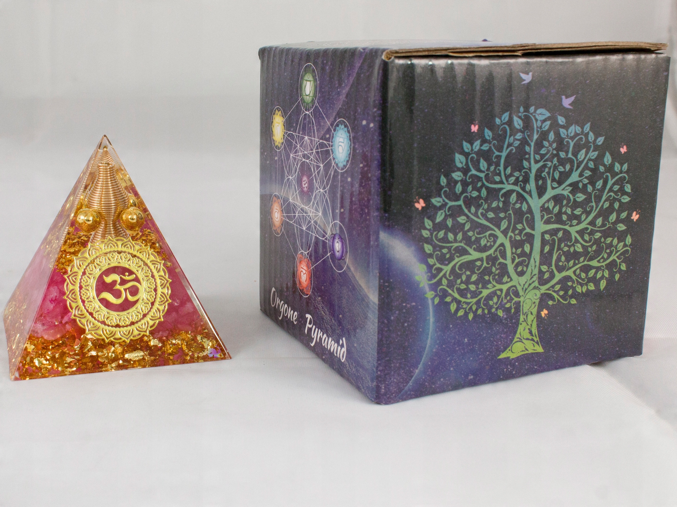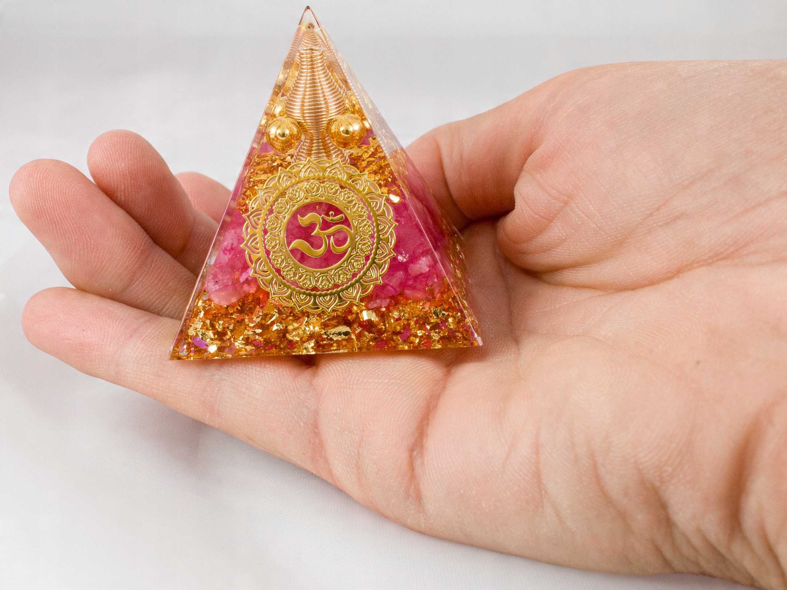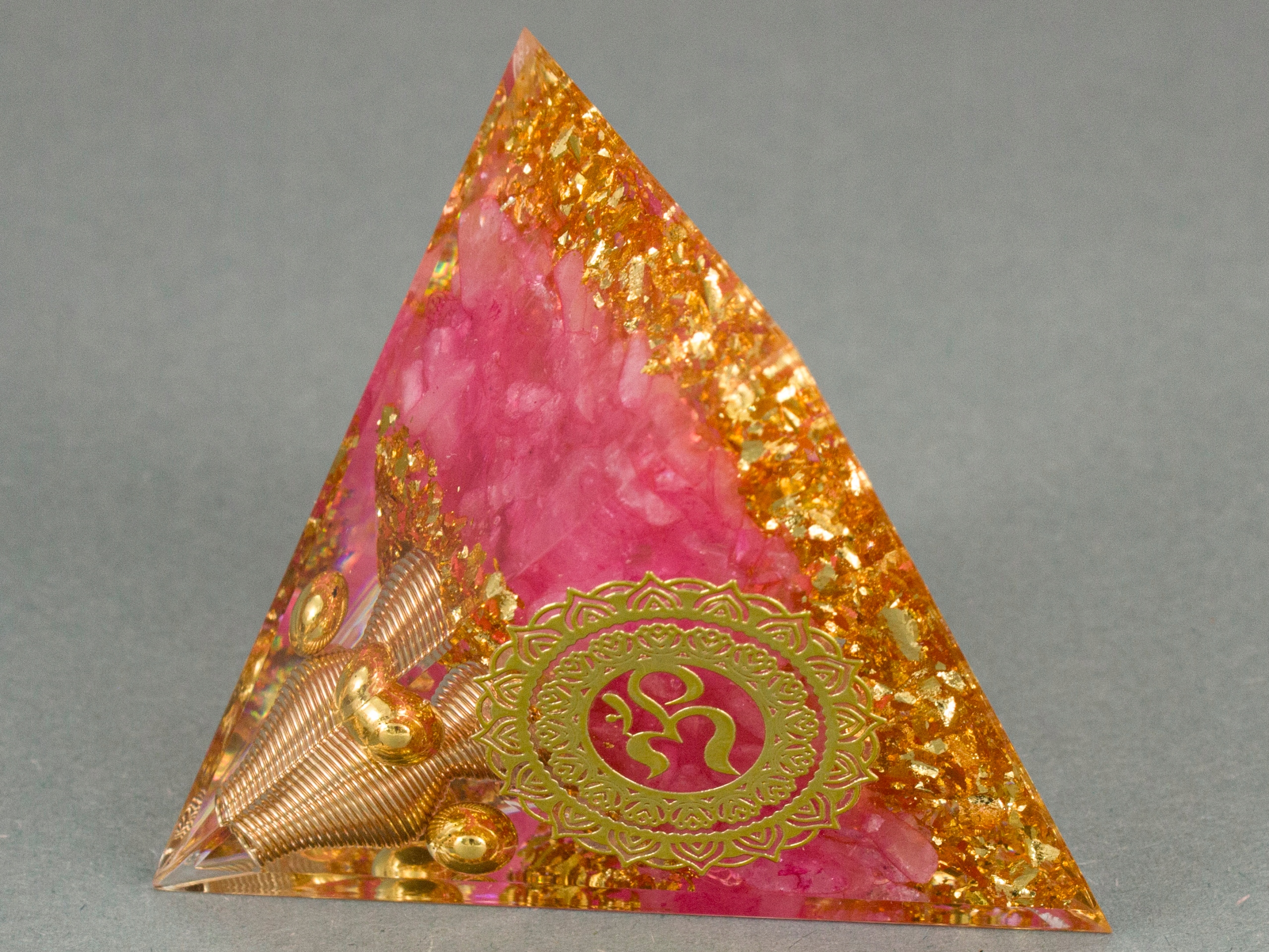 ПІРАМІДА ОРГОНІТ ФЕН ШУЙ РОЖЕВИЙ КРИСТАЛ ОМ ЗОЛОТА ФОЛЬГА ЗАЗЕМЛЕННЯ 5 см