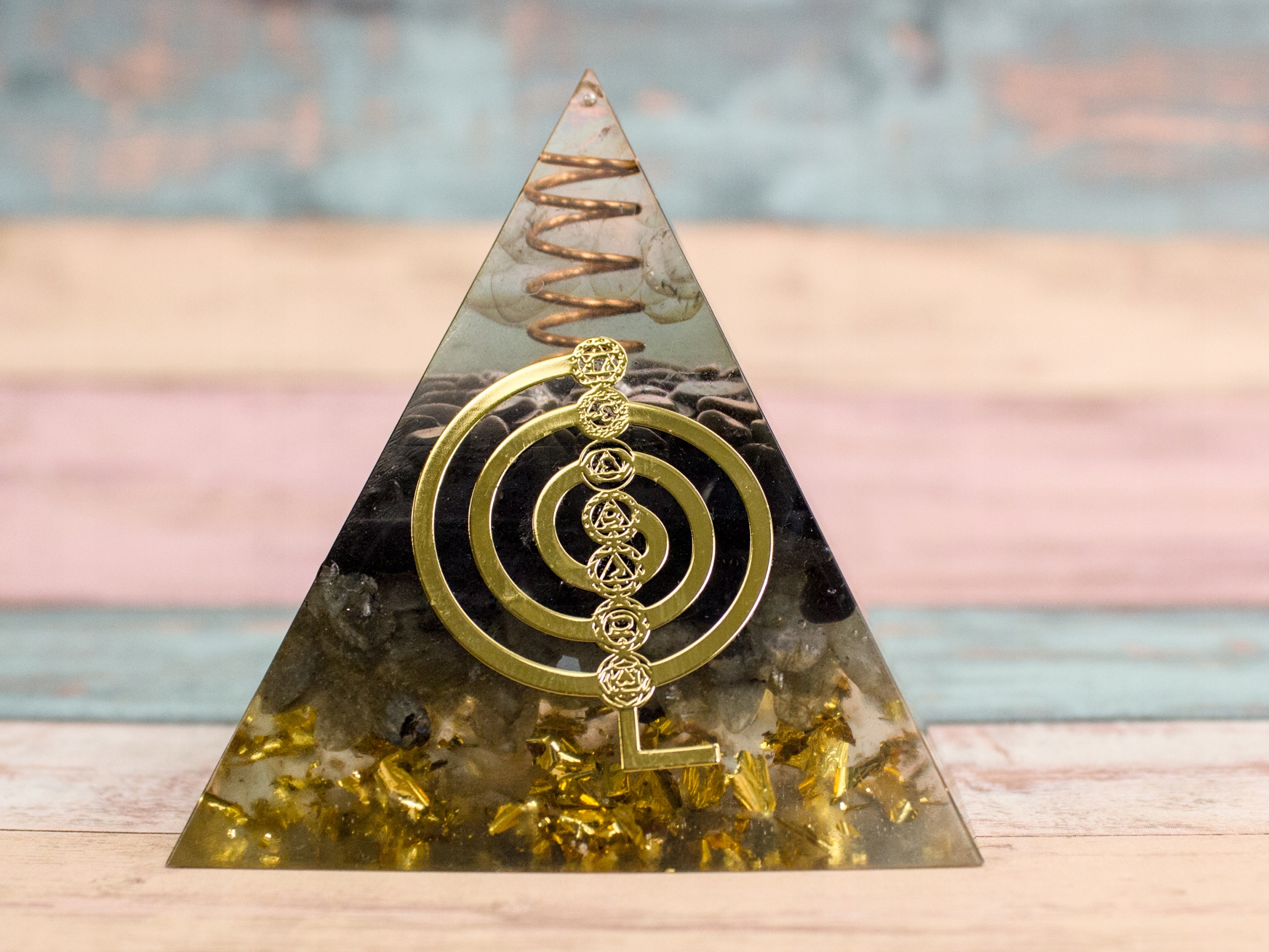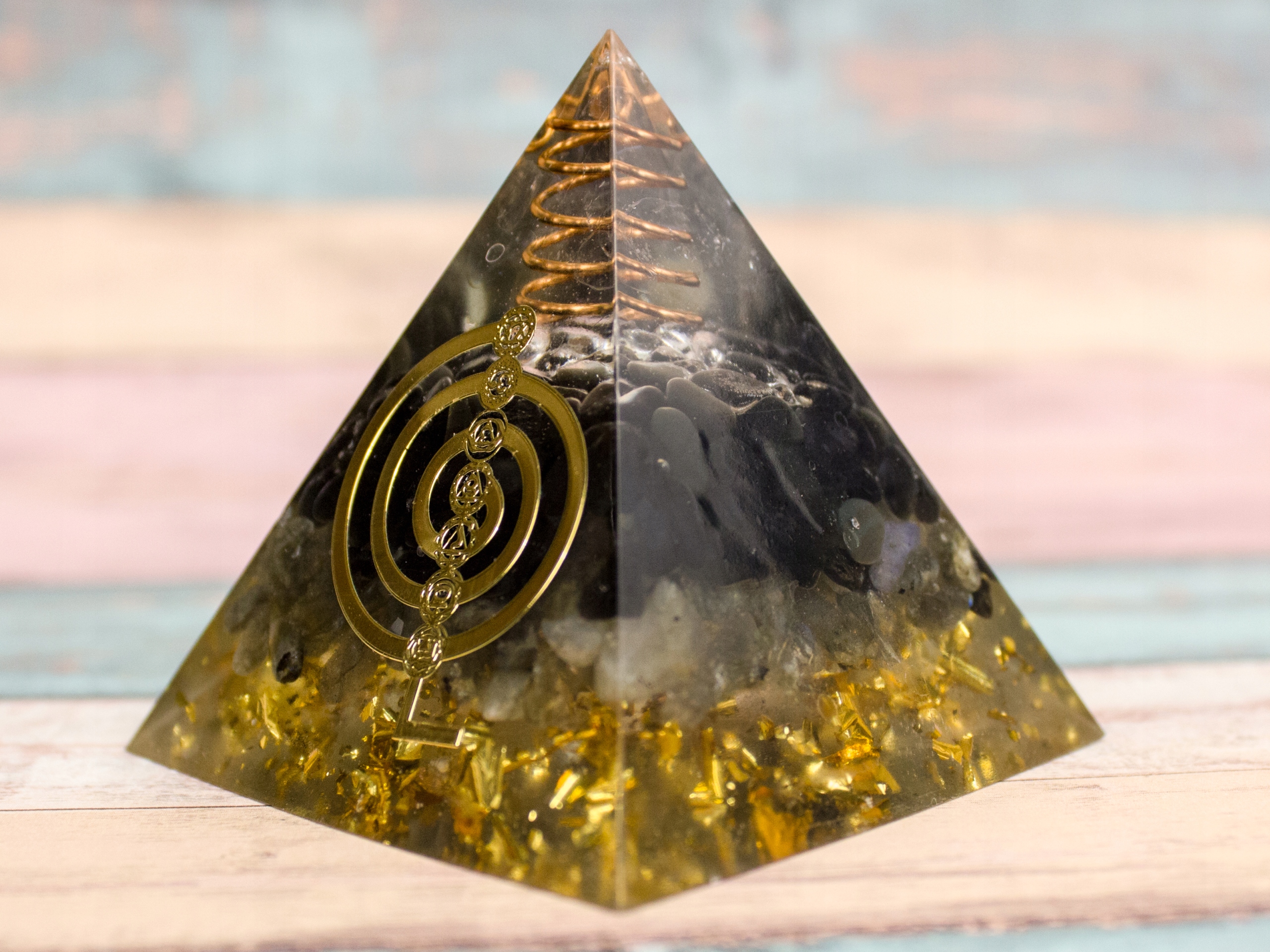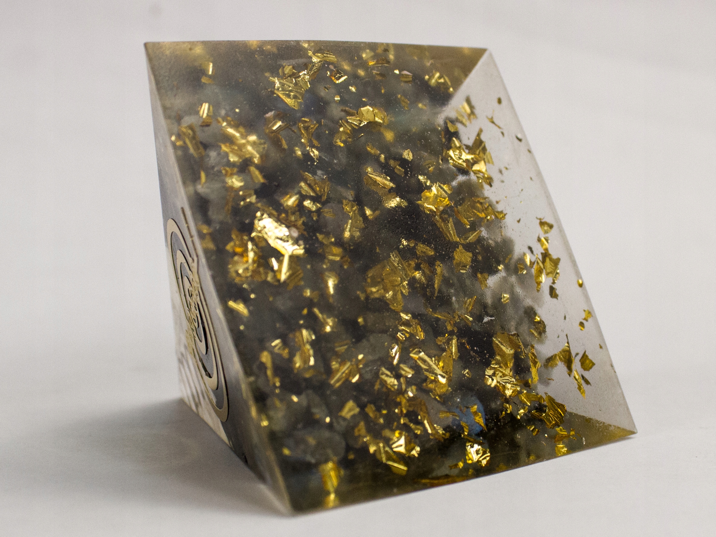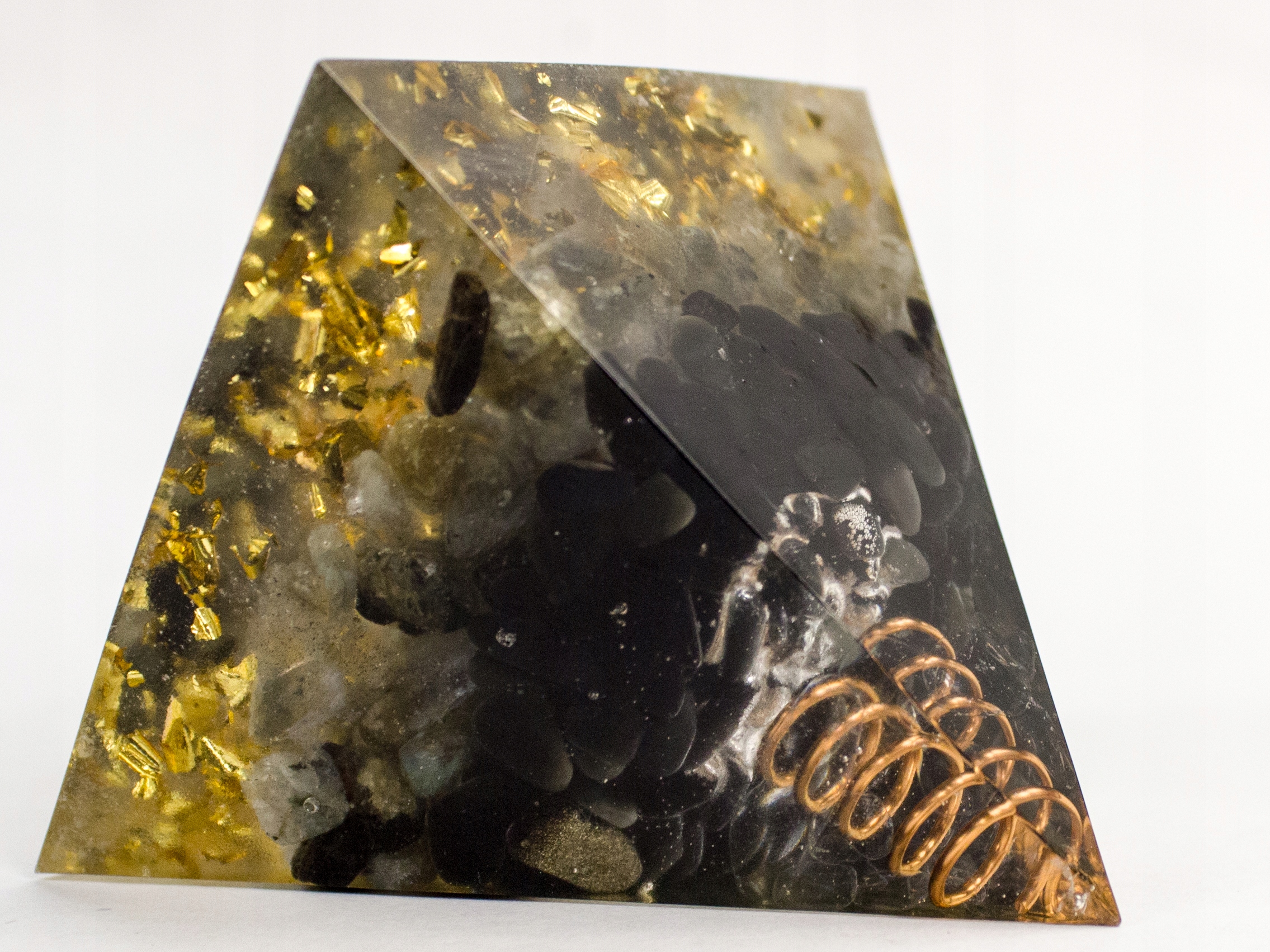 Исцеляющая, успокаивающая энергия, трансформация плохой энергии в хорошую - лучшее творчество, мир и гармония, творчество в профессиональных и деловых вопросах!!! h2 >Красивая пирамидка из оргонита - Лабрадорит - красивое украшение с кусочками медной и золотой фольги, придающее энергию и защиту всему телу, а также креативность и творческое вдохновение.