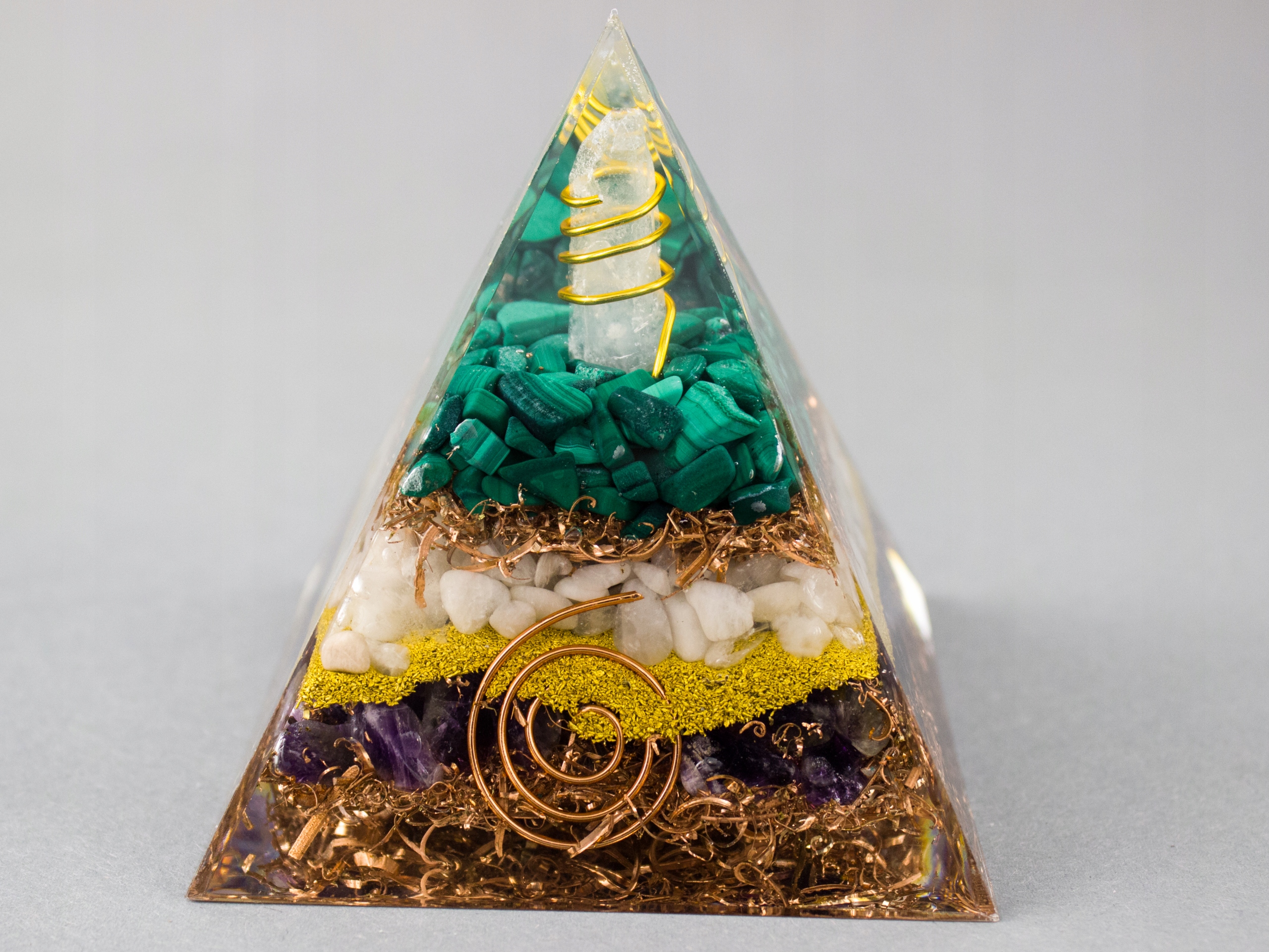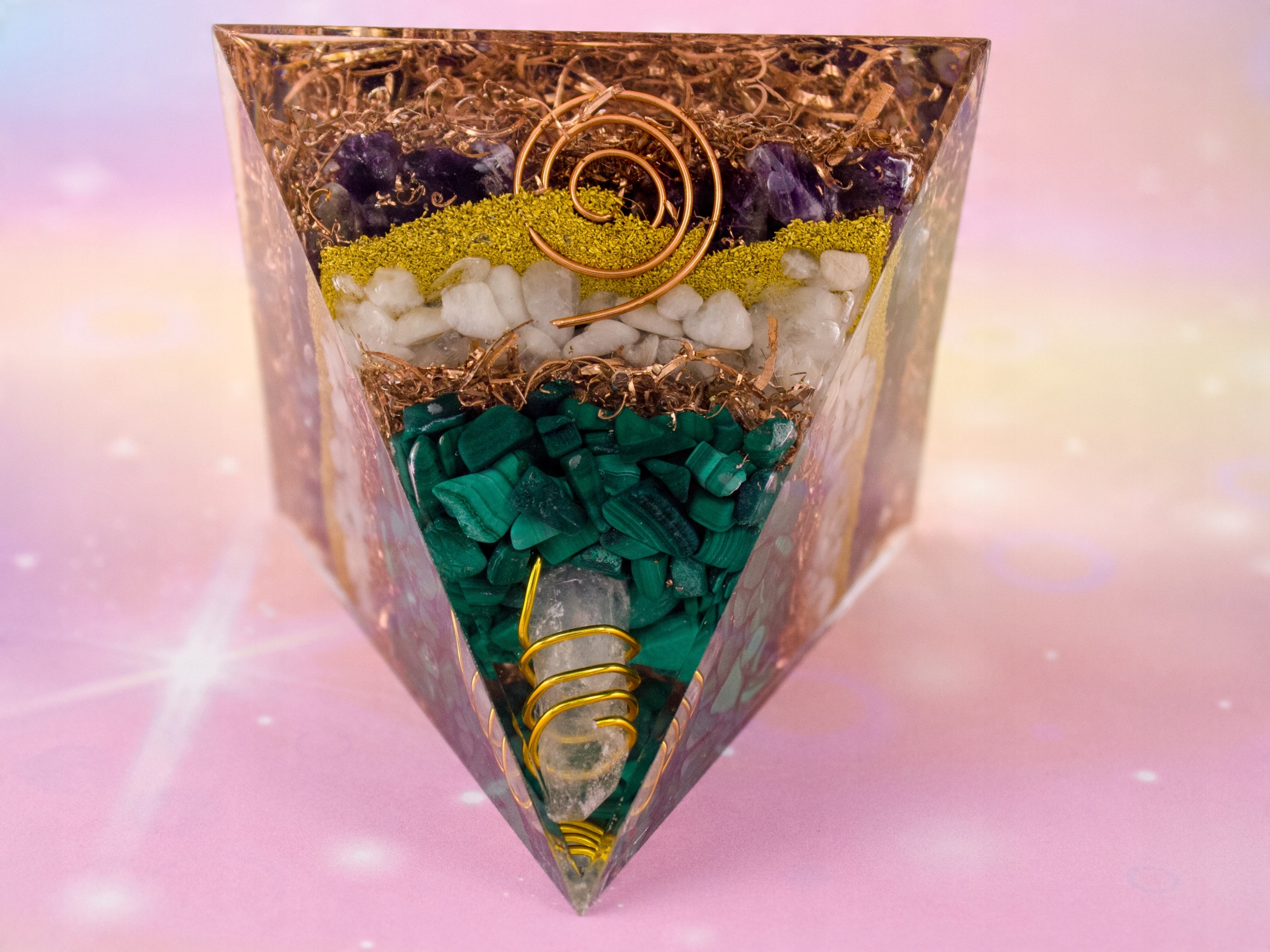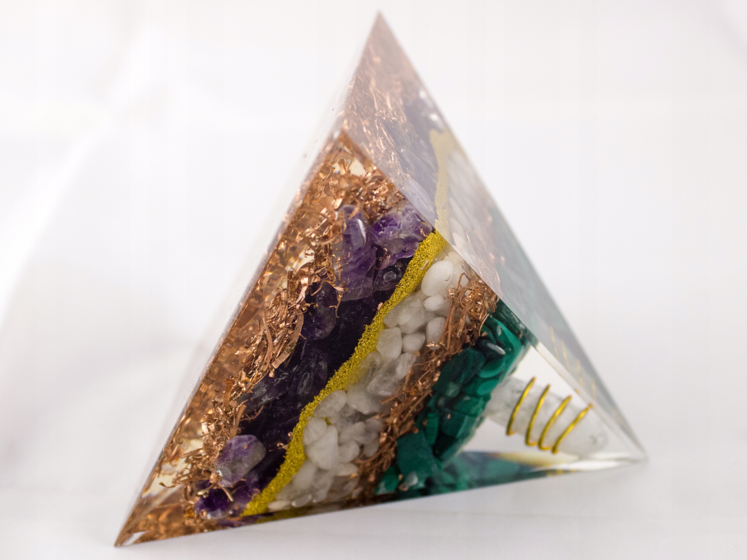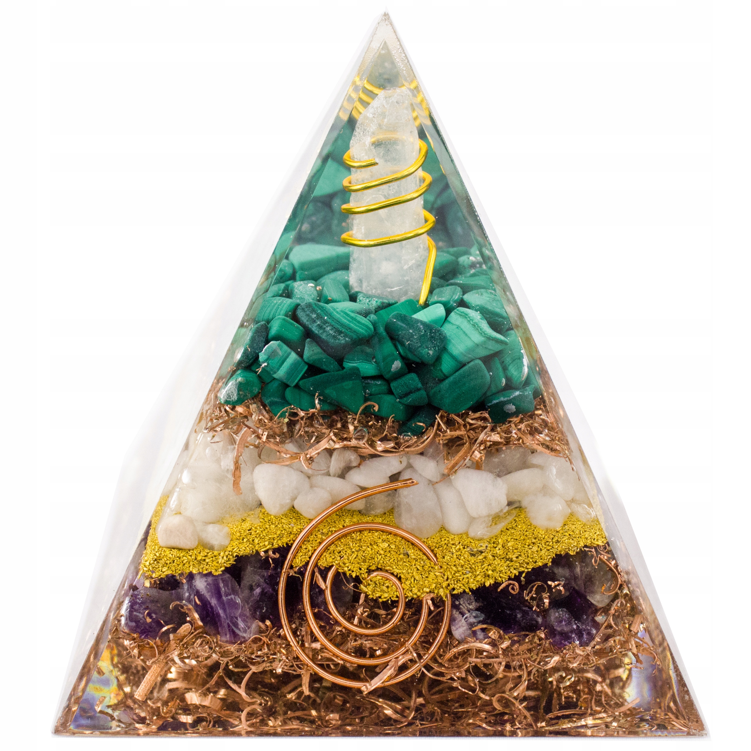 ОРГОНИТОВАЯ ПИРАМИДА МАЛАХИТ АМЕТИСТ ТОПАЗ БЕЛЫЙ КРИСТАЛЛ АМЕТИСТ ФЭН ШУЙ 8