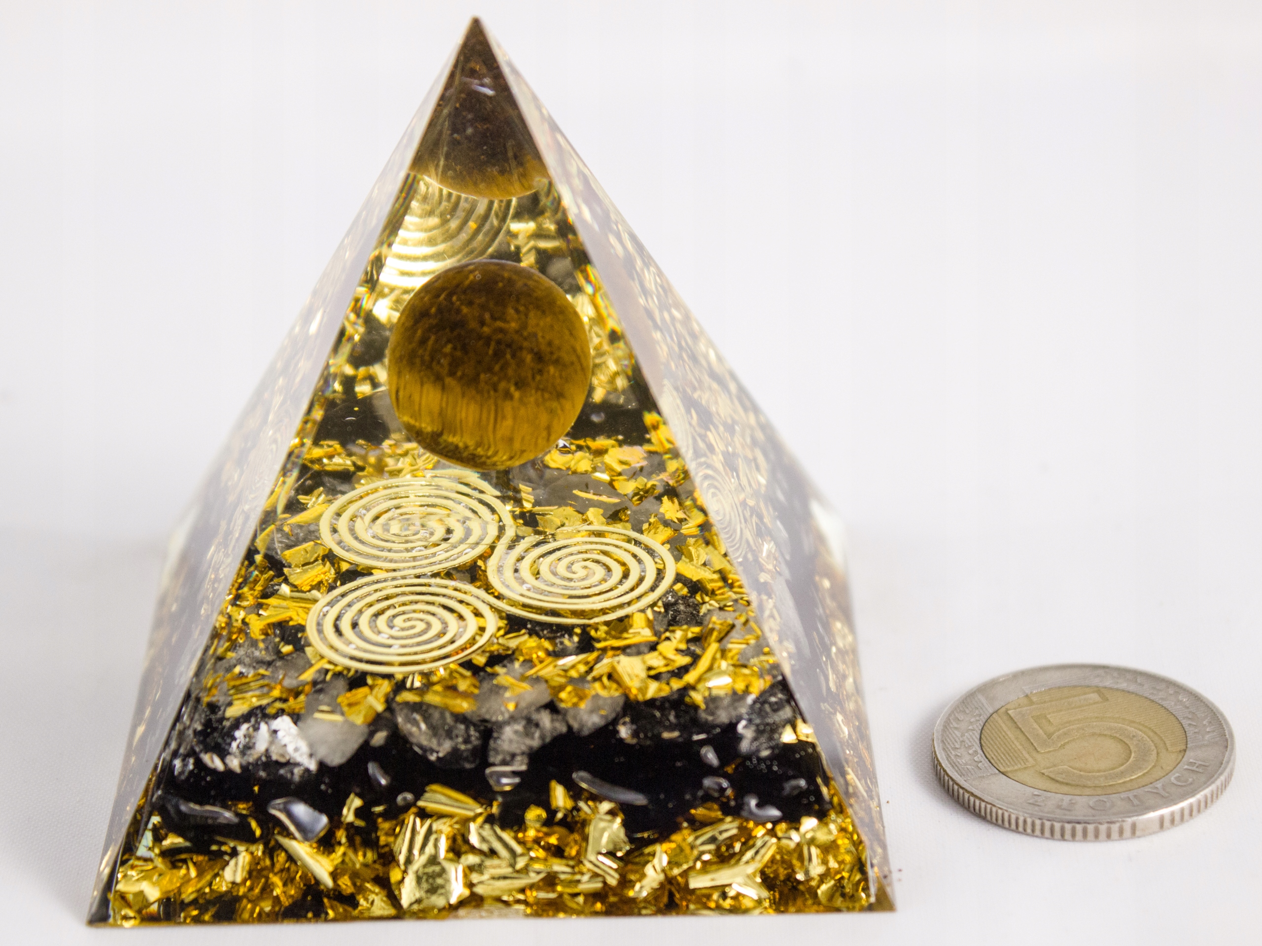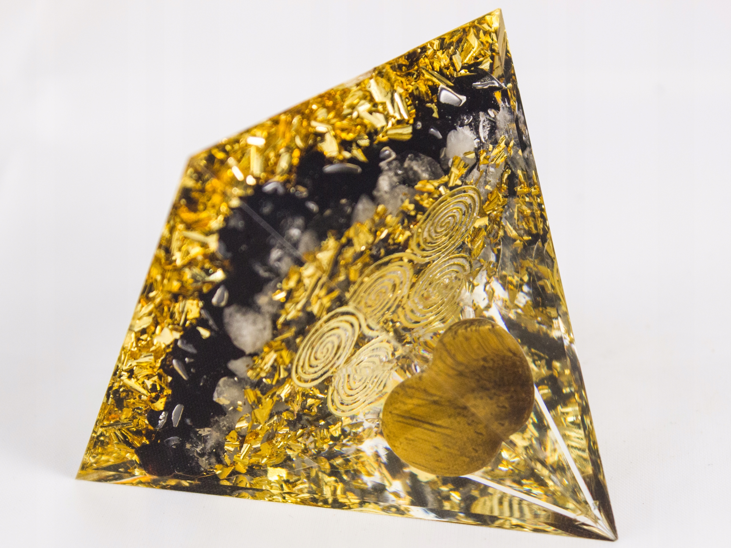 Исцеляющая энергия, трансформация плохой энергии в хорошую - лучшие отношения, успех и процветание, успехи в профессиональных и деловых делах!!! h2 >Красивая оргонитовая пирамида — сфера тигрового глаза, красивое украшение с кусочками меди, хрусталя, дымчатого кварца и золотой фольги, придающее энергию и защиту всему телу, а также защиту от токсичных людей.