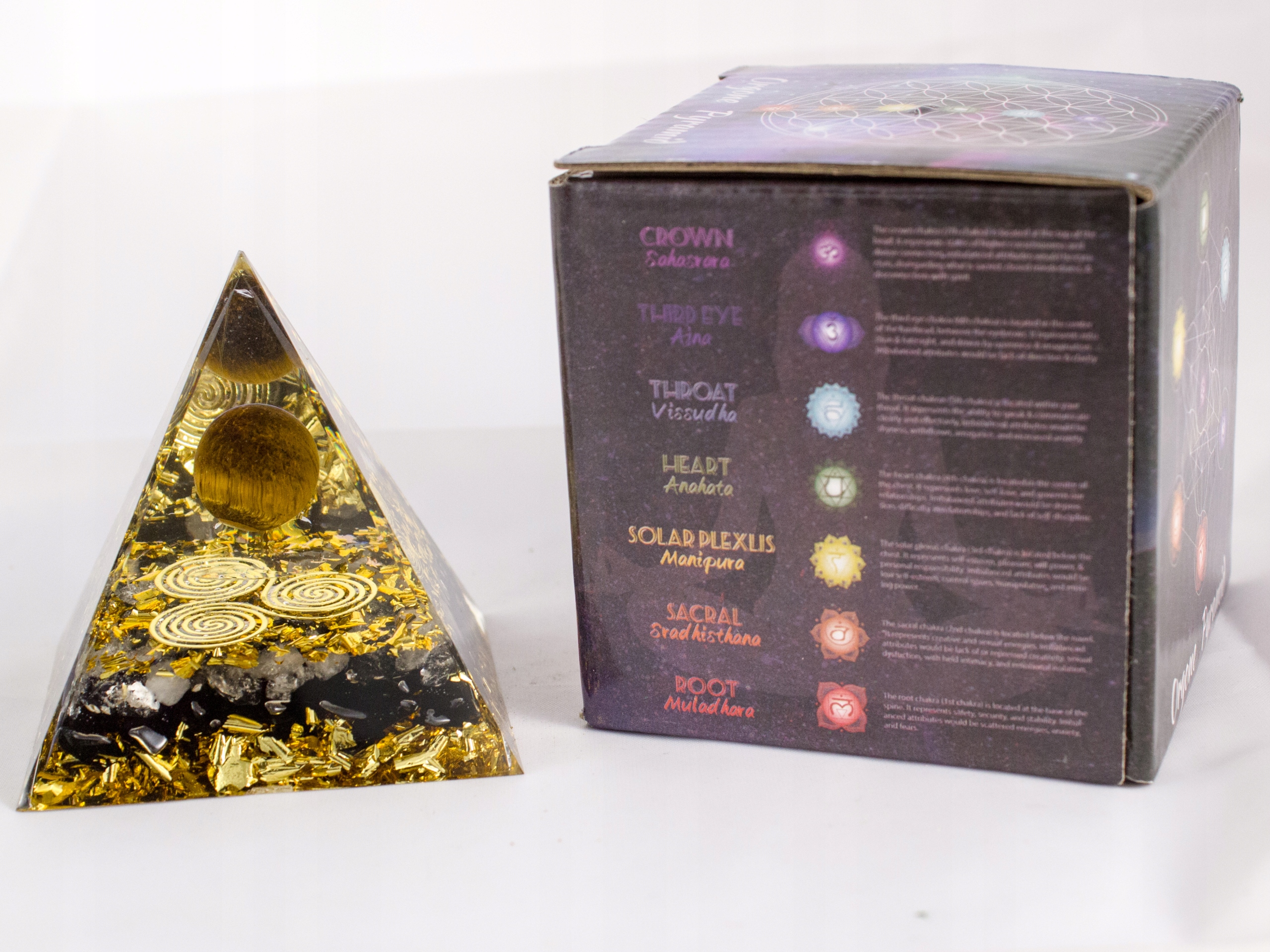 Эта пирамида оказывает благотворное воздействие на каждую из семи чакр, а благодаря камням и минералам, которые не только красиво выглядят, но и обладают собственной силой, энергией и целительством, усиливают ценный эффект очищения и разблокировки чакр, приносящий добро, счастье, здоровье.