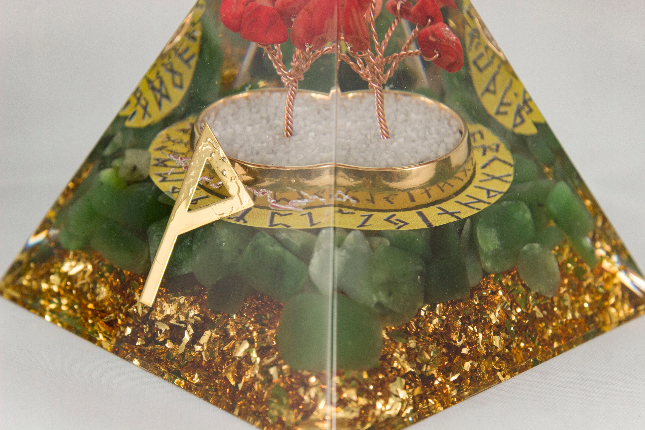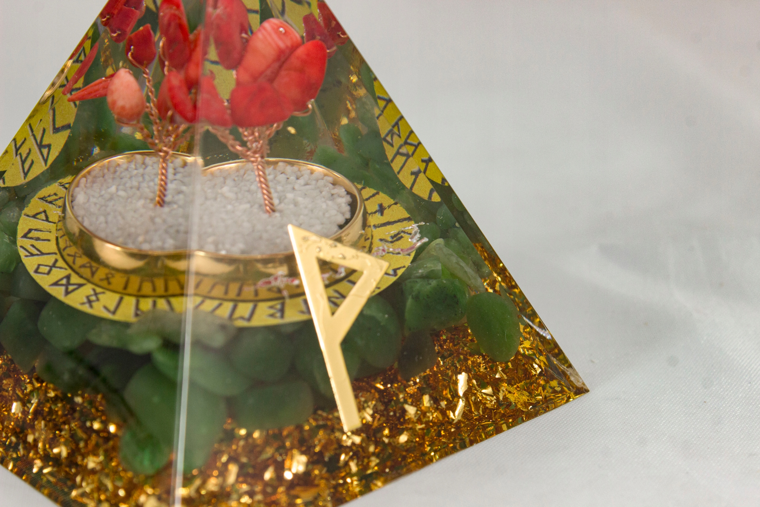 Оргонитовая пирамида с древними нордическими рунами с уникальной символикой и сильным положительным энергетическим эффектом.