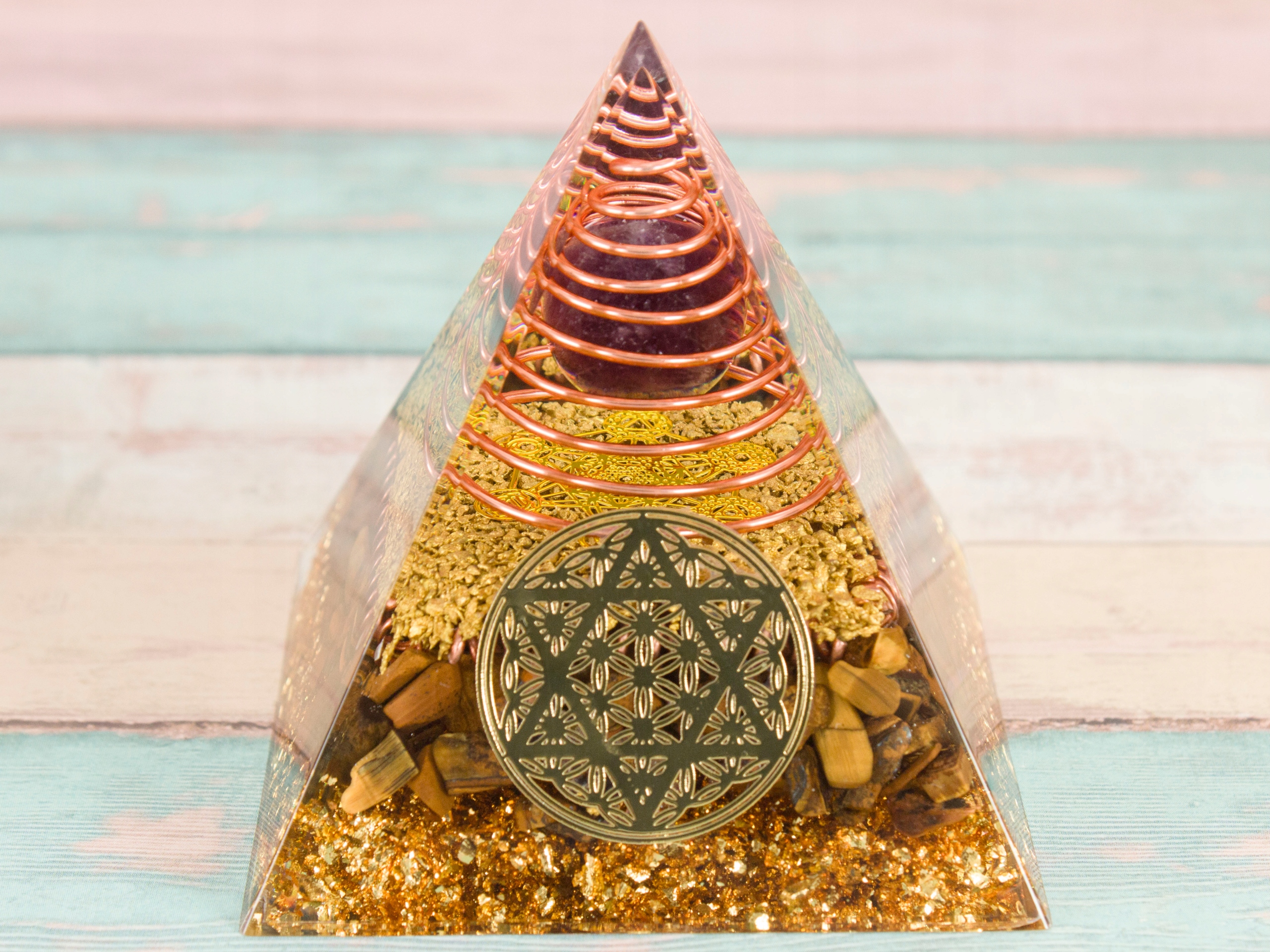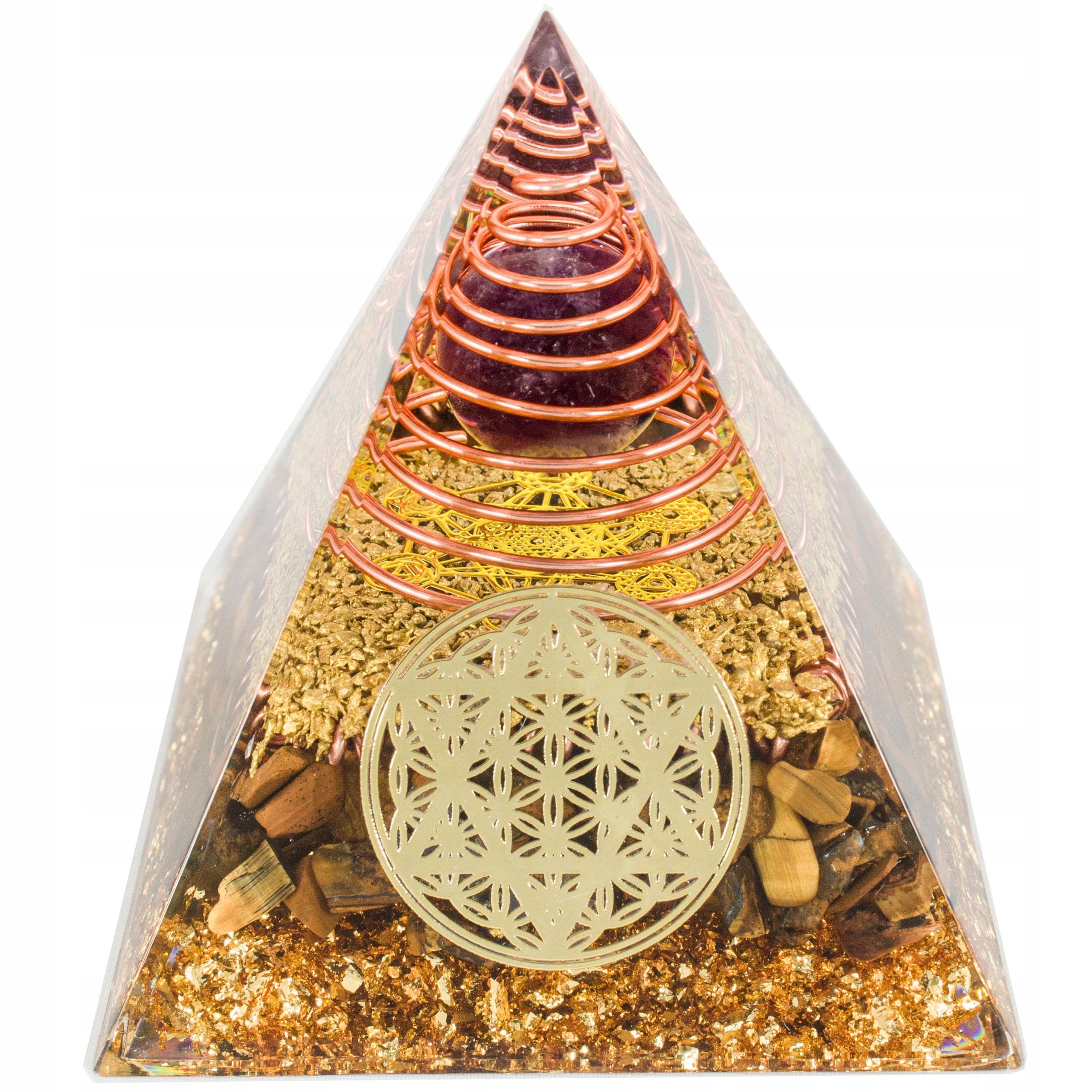 Пирамида оргонит тигр глаз аметист медь Меркаба Куб Метатрон 6 см