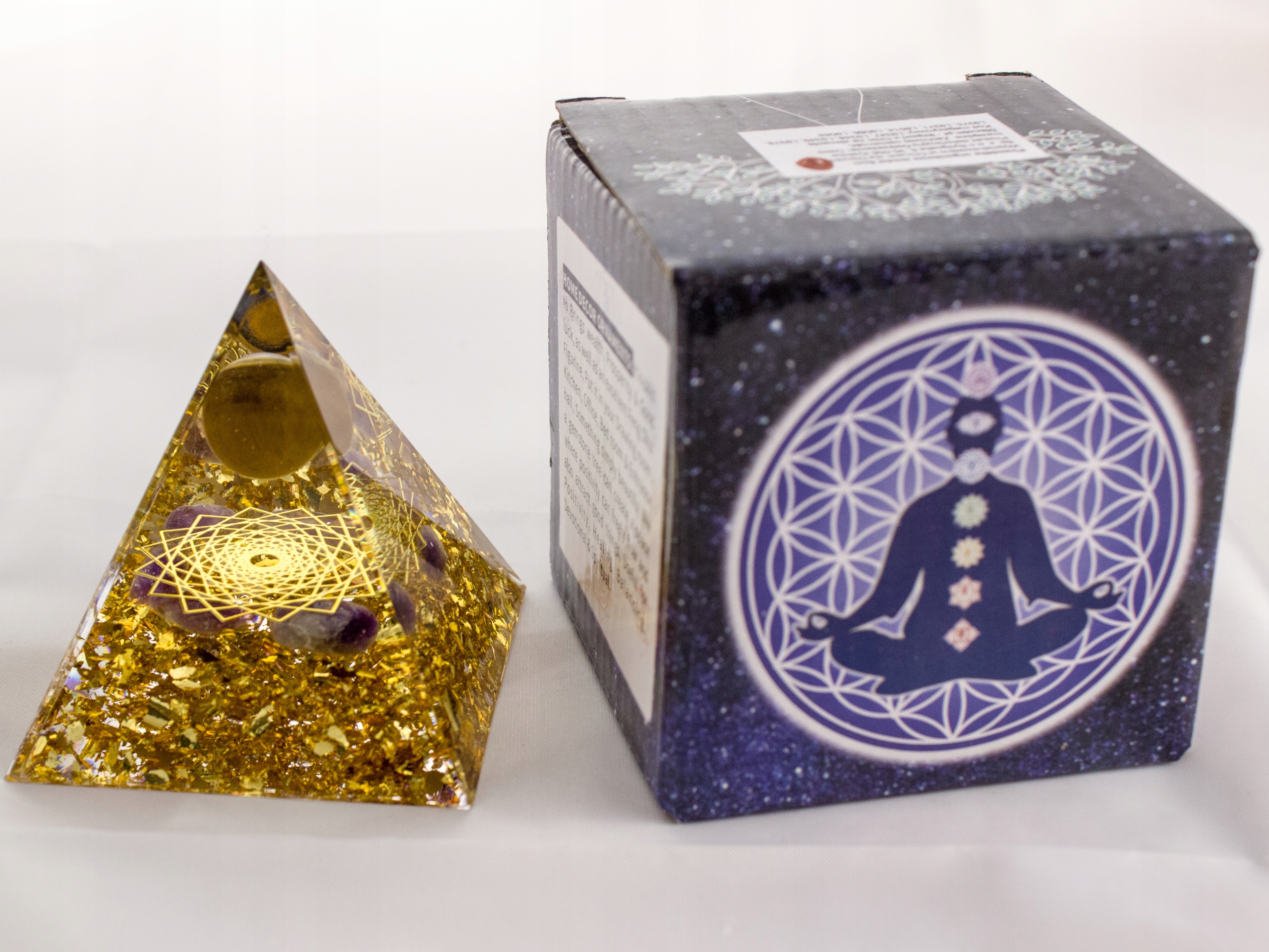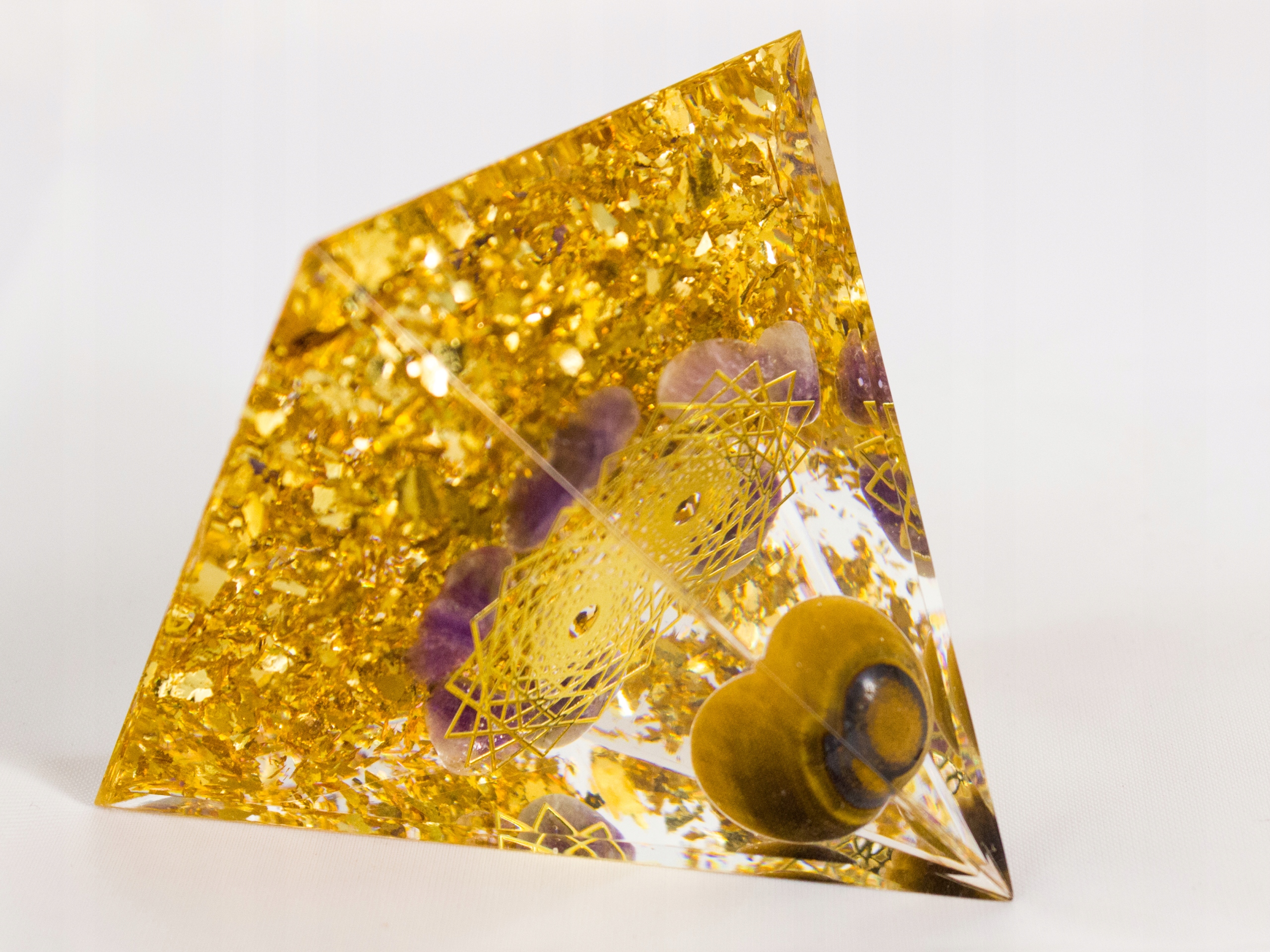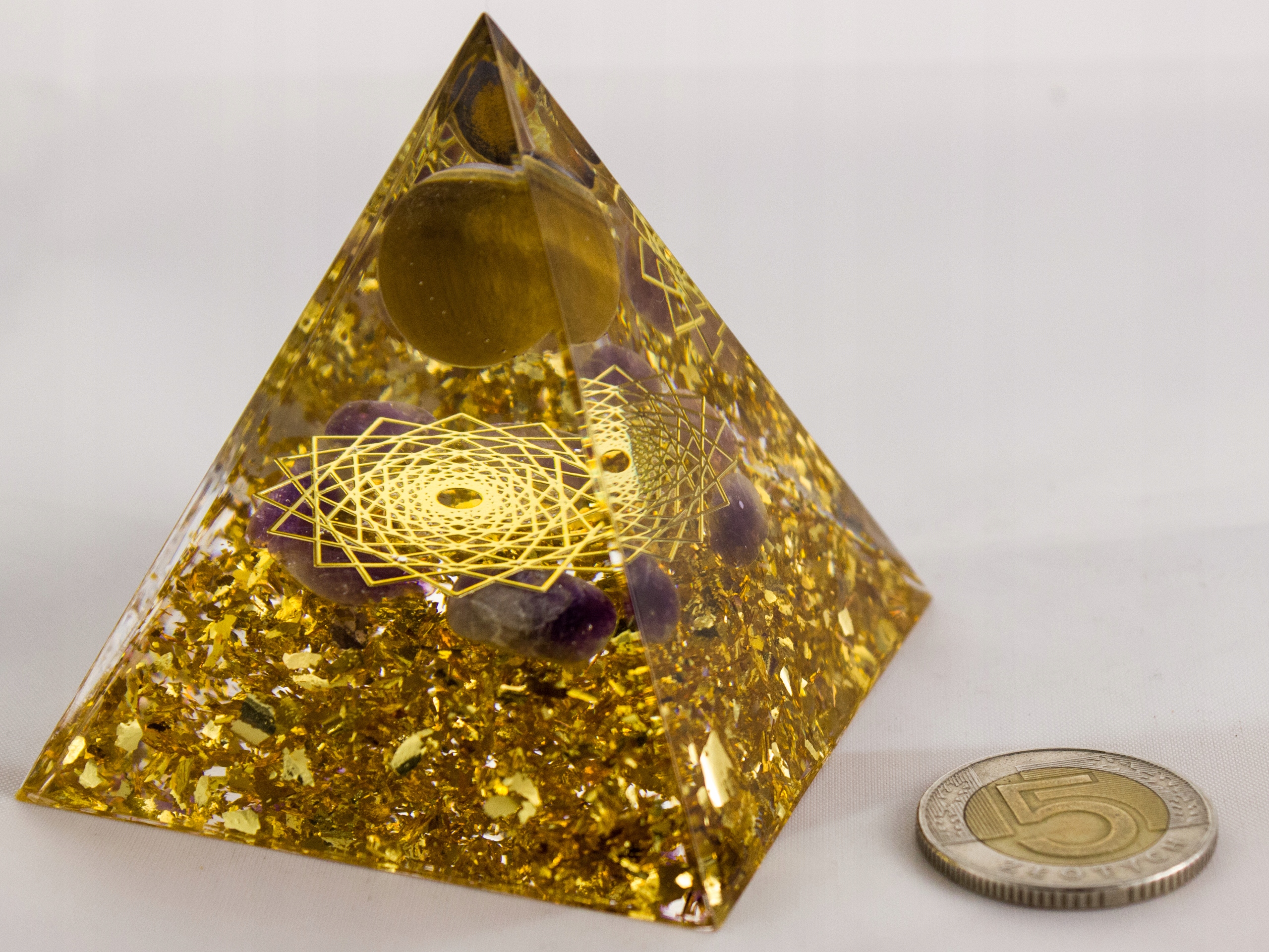 Пирамида -оргонит тигр глаз аметист медный агат żywica feng shui 6 см.