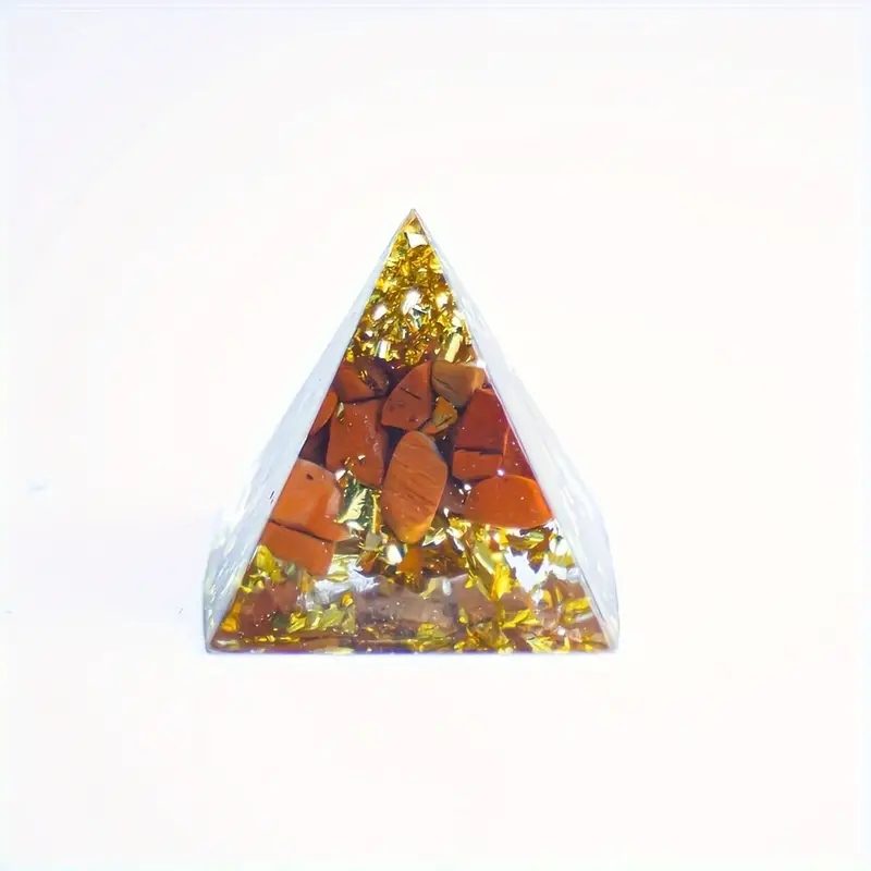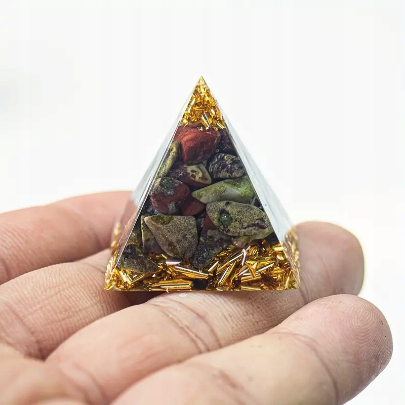 Прекрасная Оргонитовая Пирамида — украшение из натуральной смолы с блестящей золотой фольгой, излучающее энергию, дарующую хорошее здоровье, нейтрализующую плохую энергетику, очищающую окружающую среду, помогающую добиться успеха и улучшающую качество сна.