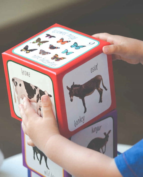 Благодаря двуязычным описаниям ребенок учит слова на польском и английском языках, поэтому ребенок даже не замечает элемента обучения во время игры.