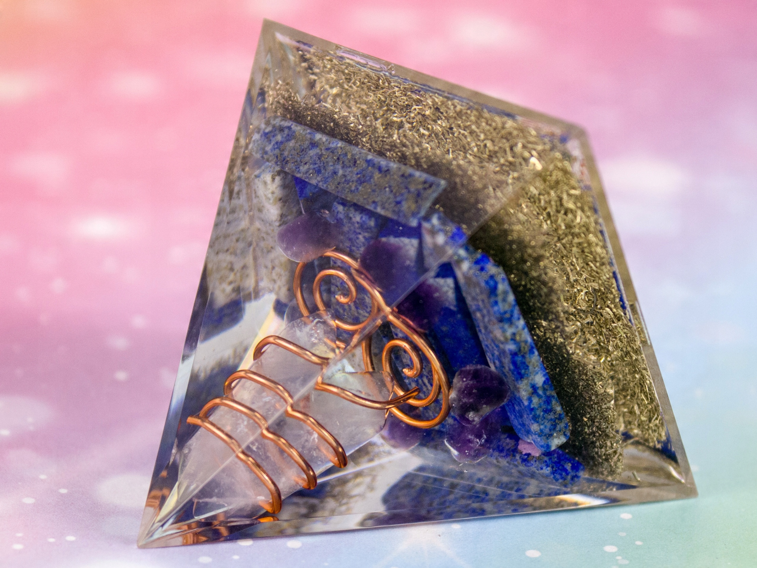 ПІРАМІДА ОРГОНІТ ЛАЗУРИТ АМЕТИСТ КРИСТАЛ СМОЛА ГАРМОНІЯ БІОЕНЕРГІЯ 5 см